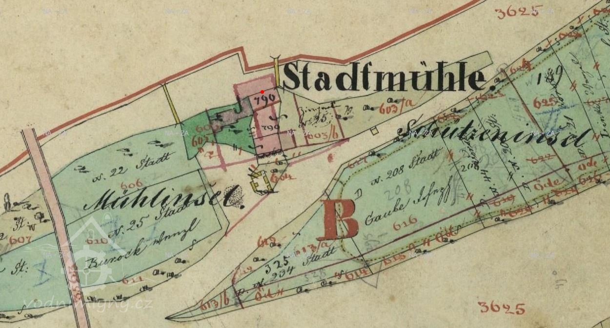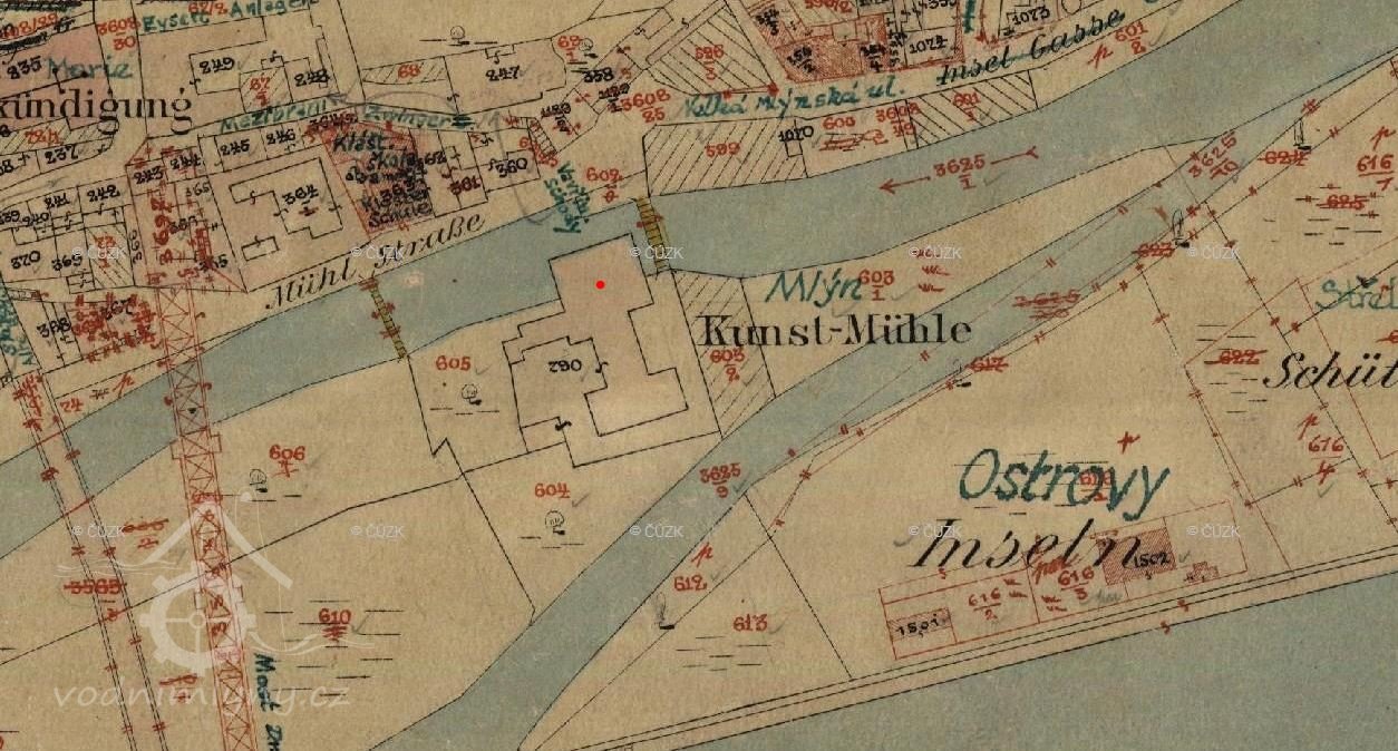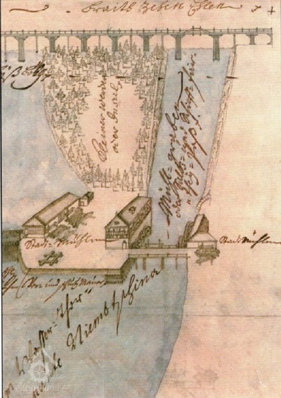 Na místě dnešního Střeleckého ostrova byly v 1. polovině 18. století ostrovy tři - Velký, Malý (Mlýnský) a Bažantí. V dolní části ostrova byl postaven roku 1856 velký parní mlýn, který patřil Josefu Conradovi z Kamenického Šenova. Moderní mlýn vznikl na přelomu 19. a 20. století na místě bývalého městského mlýna na Střeleckém ostrově.