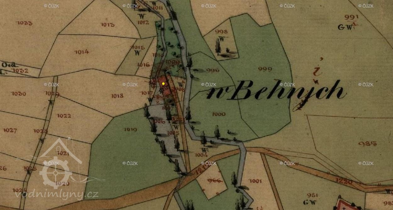 PopisV roce 1930 měl mlýn jedno kolo na svrchní vodu, průtok 0.091 m3/s, spád 4 m, výkon 3.1 HP