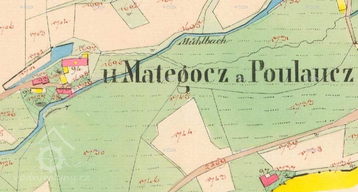22.5.1653 Jan syn Blažeje Mlynáře ze mlýna Matějovic (Lhota pod Kůstrým) na staré mapě i nové vedeno jako U Matějů a U Poulů. Příjmení buď Mlynář, nebo neznámé.