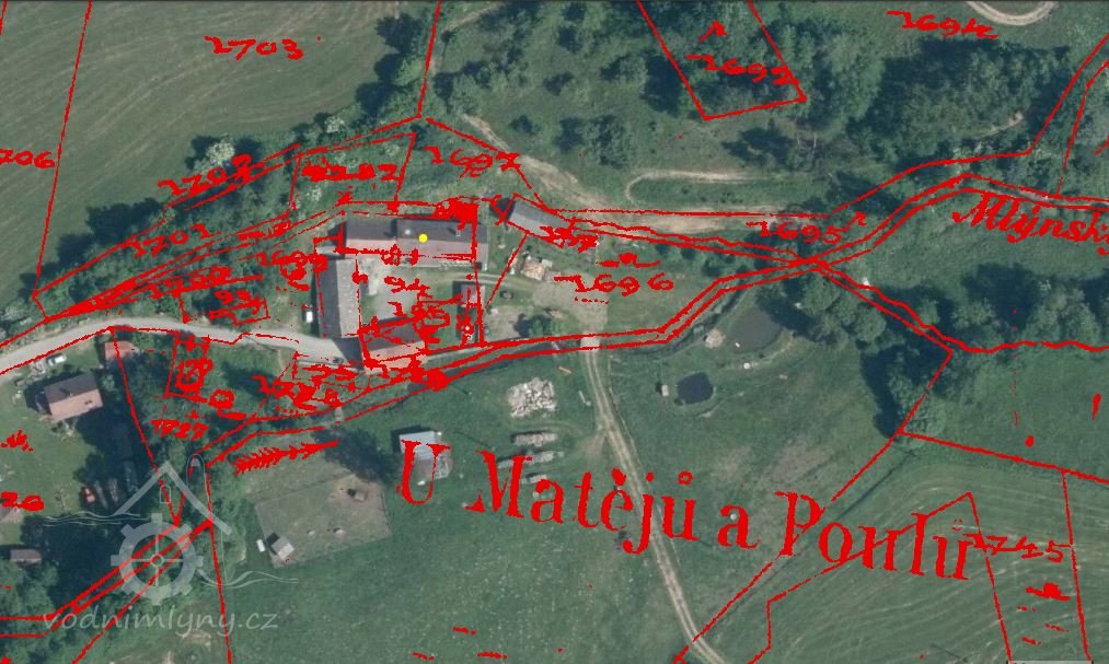 Areál mlýna a pily existující již v 18. století, se nachází na okraji osady Parýzek.