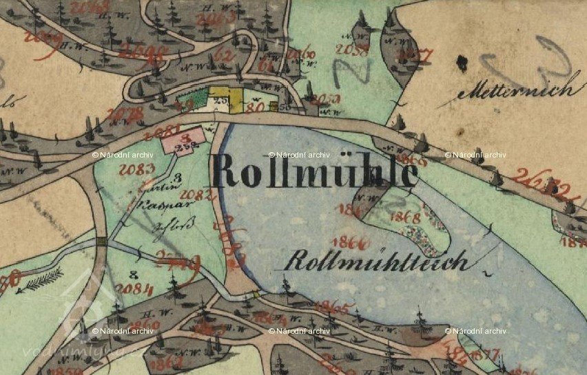 Osudy kolového mlýna jakoby kopírovaly proměnlivý běh času, který se v tomto údolí také nikdy nezastavil. Mlýn byl vybudován už v první polovině 18. století, o čemž svědčí název Mlýnského rybníka už v roce 1751. Během pozdějších let prošel hrázděný objekt s kamenným obvodovým zdivem přízemí několika stavebními úpravami. Na severním kamenném vstupním portálu čteme letopočet „1785“; otec pozdějšího rakouského státního kancléře, hrabě Franz Georg von Metternich, nechal tehdy provést zásadní přestavbu mlýna. Nový nájemce si vedl podrobné účetní knihy, které se naštěstí v zámecké knihovně zachovaly dodnes a pomáhají nám zjistit podrobnosti provozu mlýna v letech 1804-1858.
