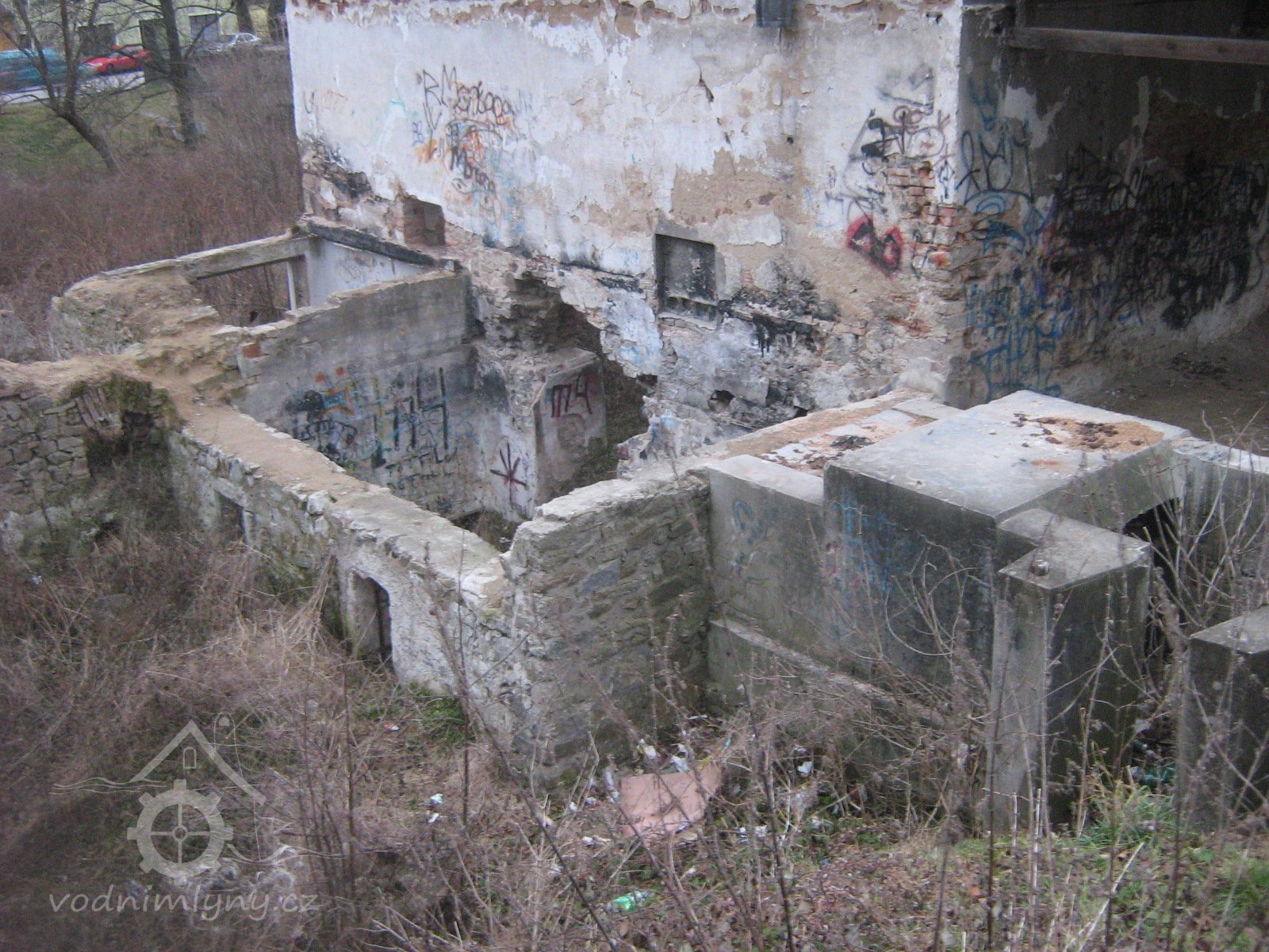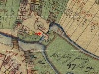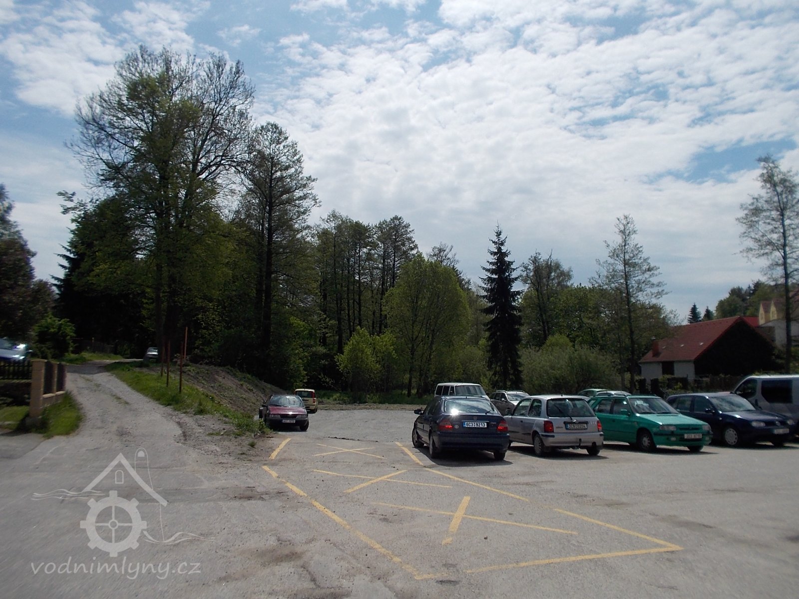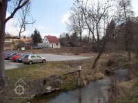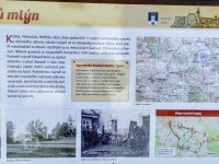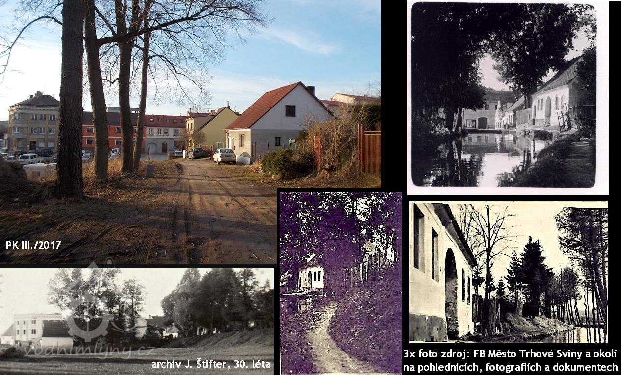 * před mlýnem prostranství, pod okny zahrádka, od mlýna vlnitá pěšina do průchodu v Novém městě + dále k mlýnům podle strouhy (= náhonu)