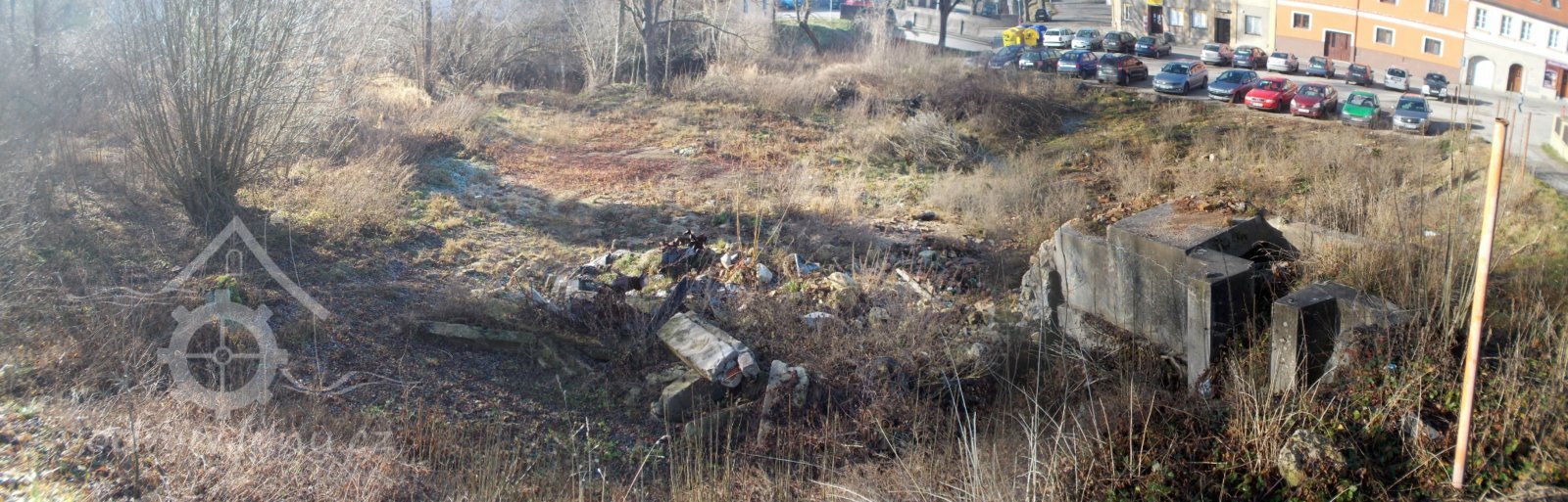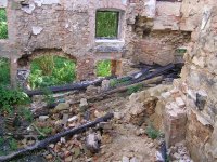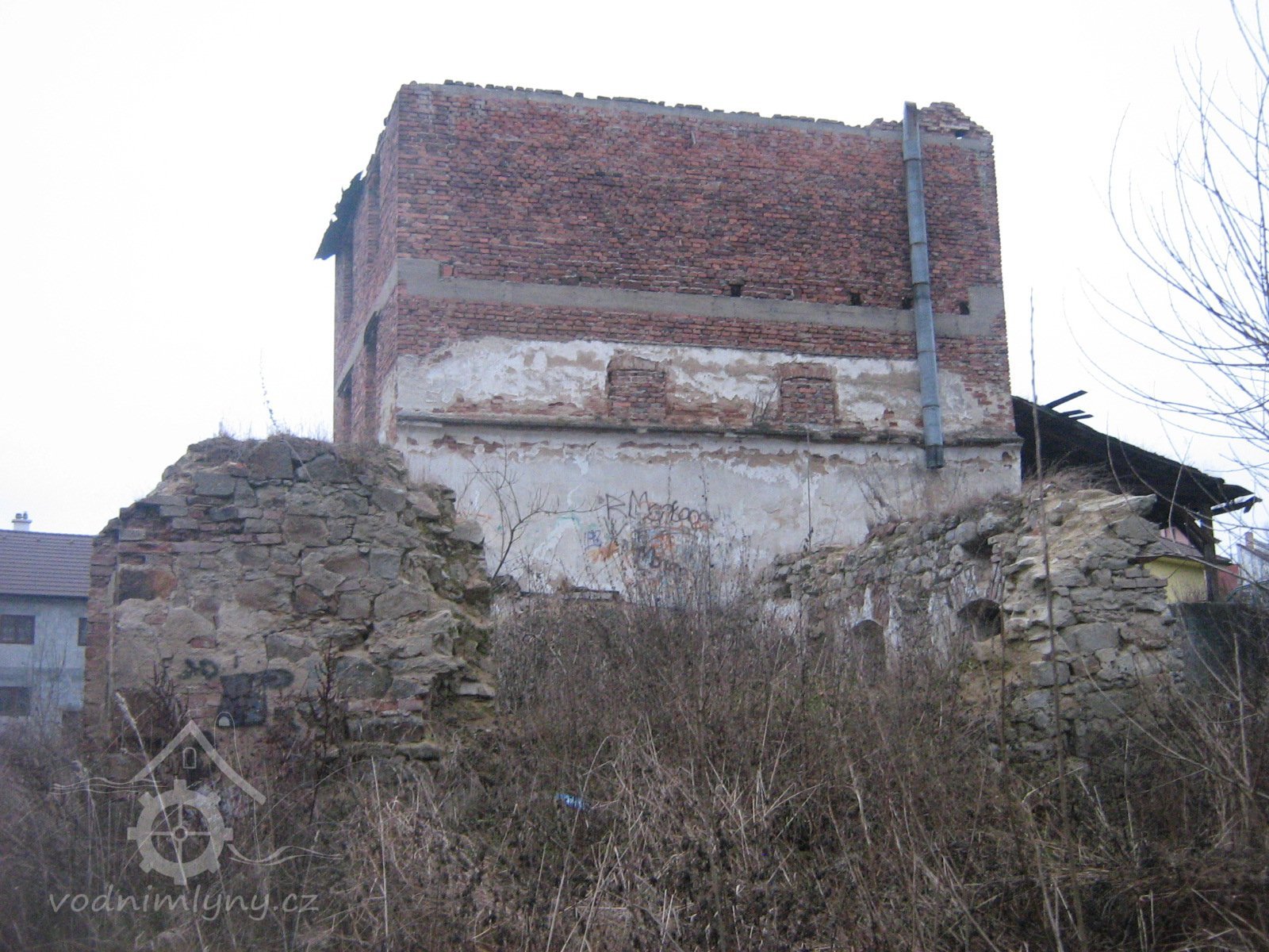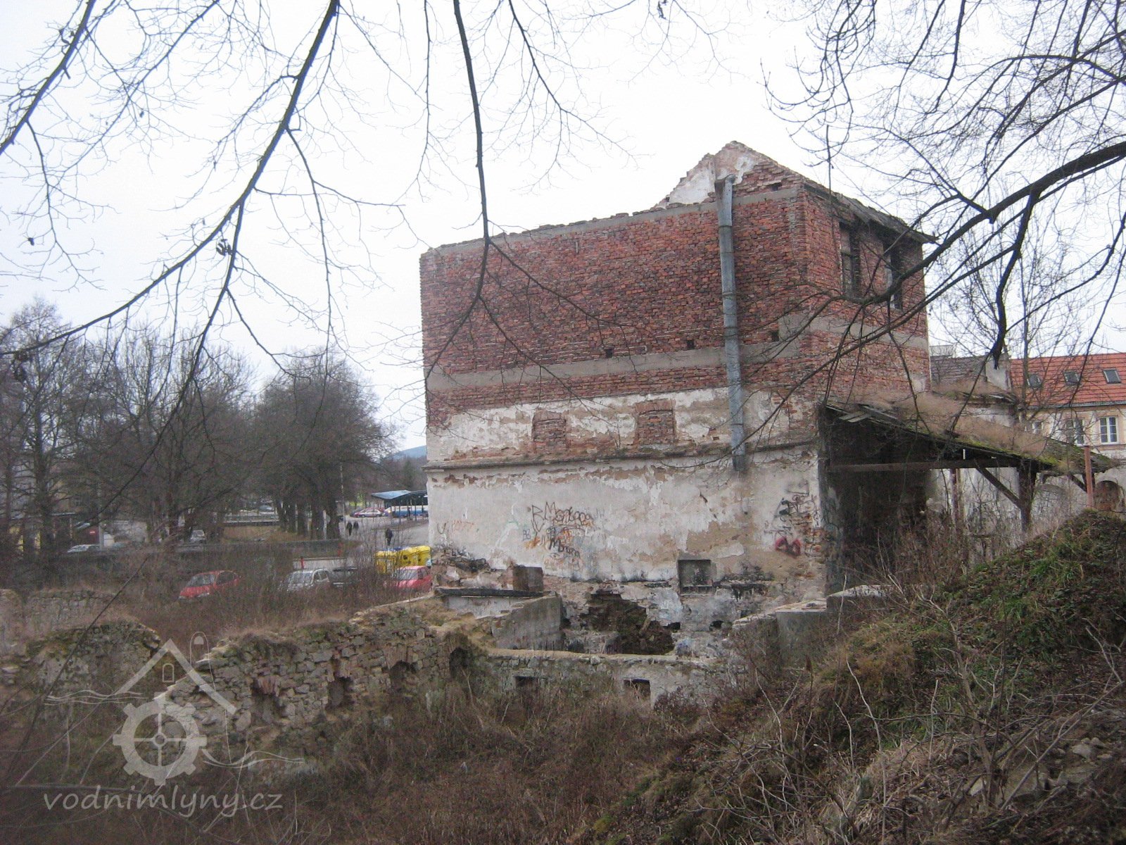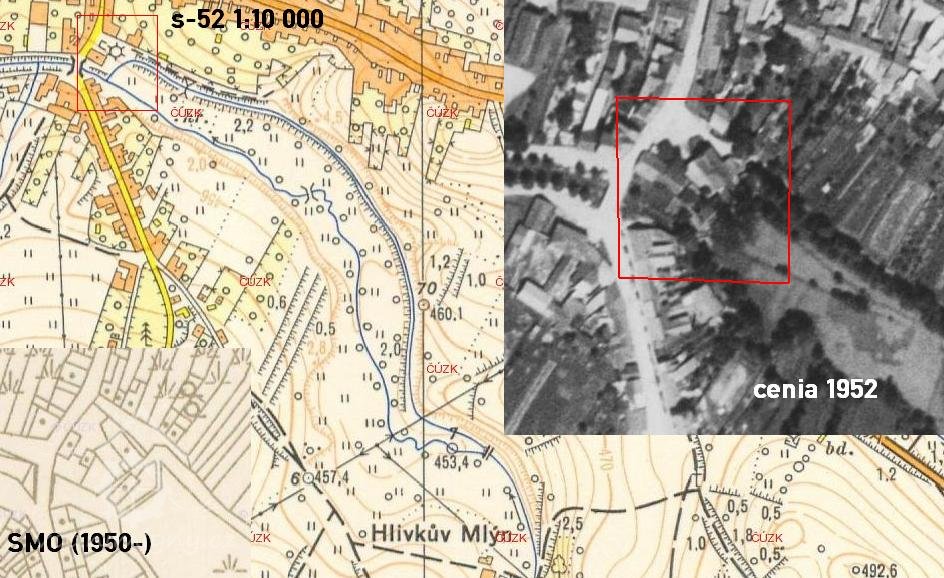 * před mlýnem prostranství, pod okny zahrádka, od mlýna vlnitá pěšina do průchodu v Novém městě + dále k mlýnům podle strouhy (= náhonu)