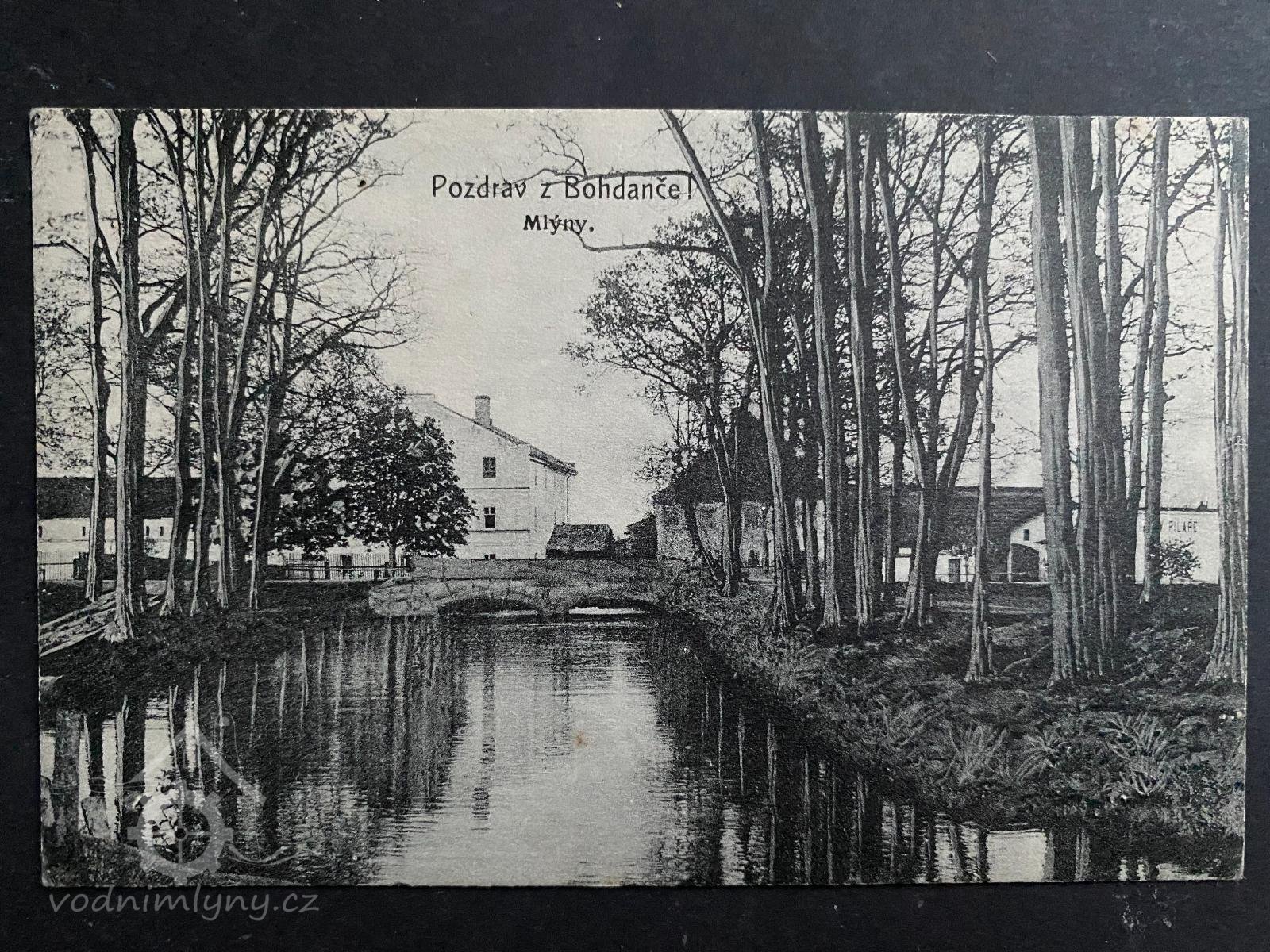 8) jakož obzvláštně čest a chvála Panu Bohu všemohoucímu vydávati povinni jsme, tak tehdy taky přistupující držitel mlýna zavázán zůstává sám na příklad jeho domácím ctný a bohabojný křesťansko-katolický život vésti, chasu věrnou – a spravedlivou samospasitelný katolický víry chovati, žádný podezřelí lidi u sebe nepřechovávati v lásce a svornosti s druhým mlynářem býti a pokudž by ve mlýně k své potřebě stroje zlepšovati chtěl, jemu žádné překážky nečiniti, a aniž kdy na skázu jeho jíti, tak taky kdyby se jemu od kohokoliv nějaká zkrácení činila, má použít ve všech jemu na škodu vstupujících příhodách úřední zastání, čehož všeho na potvrzení – jak od strany magistrátu a starších obecních na místě celé obce, tak i od přistupujícího mlynáře dva stejně znějící exempláře vlastnoručně podepsaný a pečeť naší menší městskou jsme vědomě přitisknout nechali. Jenž se stalo v JMcís. komorním městečku Bohdanči roku a dne s předu psaného.