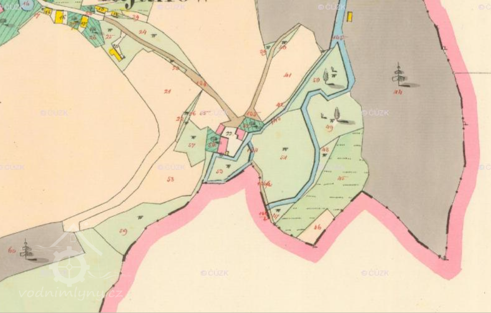 PopisV roce 1930 poháněla mlýn 3 kola na svrchní vodu, průtok 0.127, 0.168 a 0.127m3/s, spád 2.8 m, výkon 10.7 HP