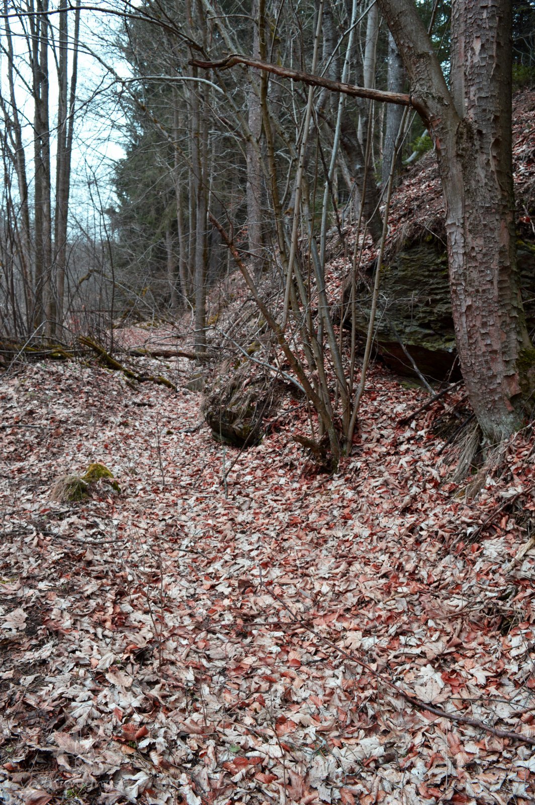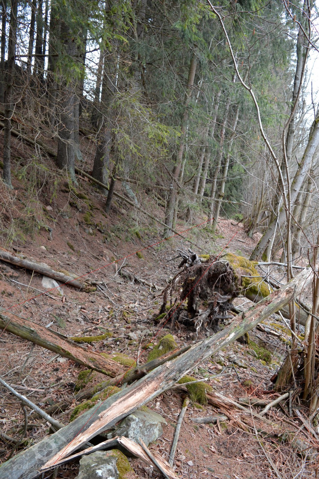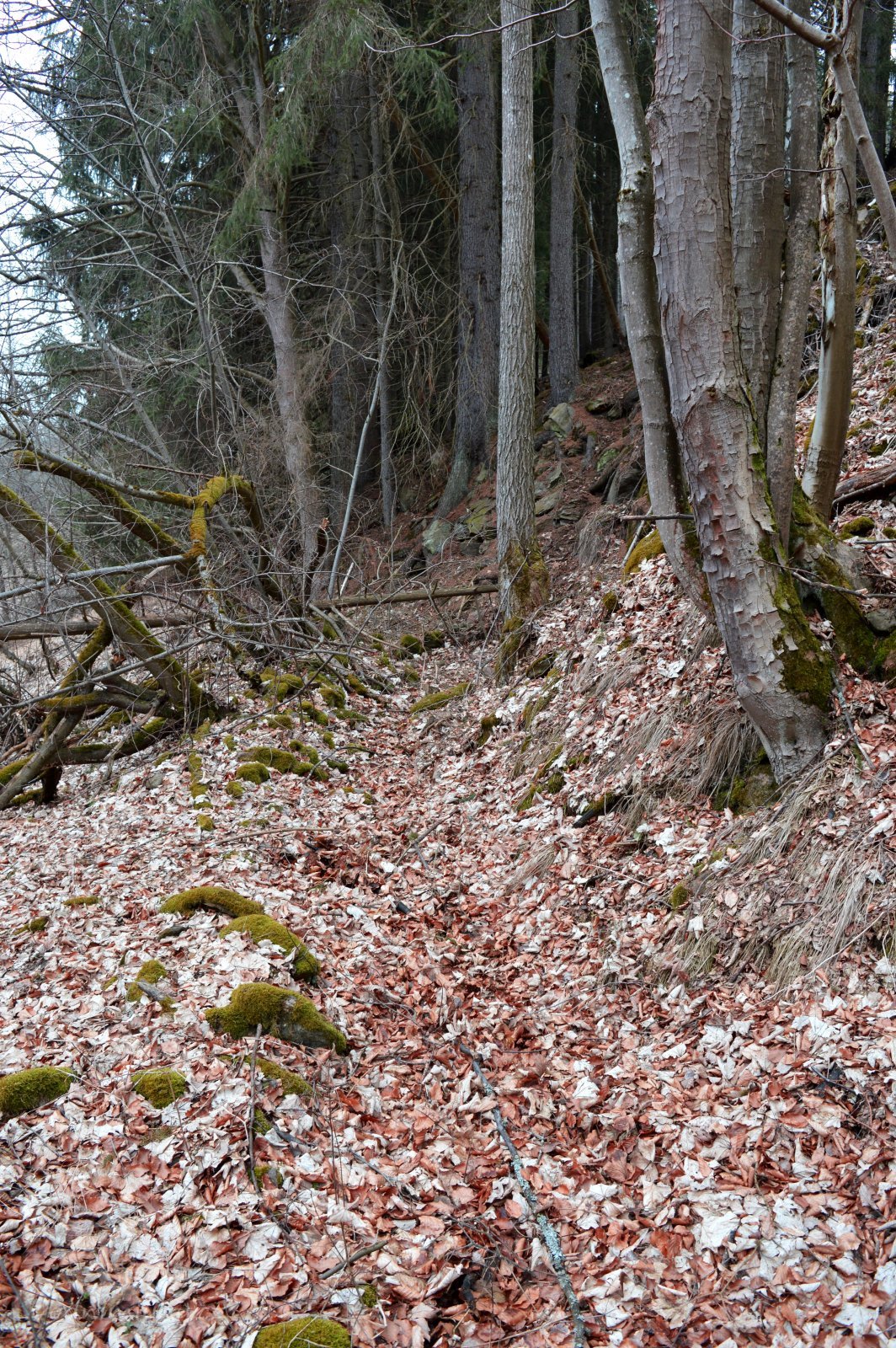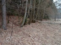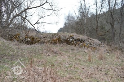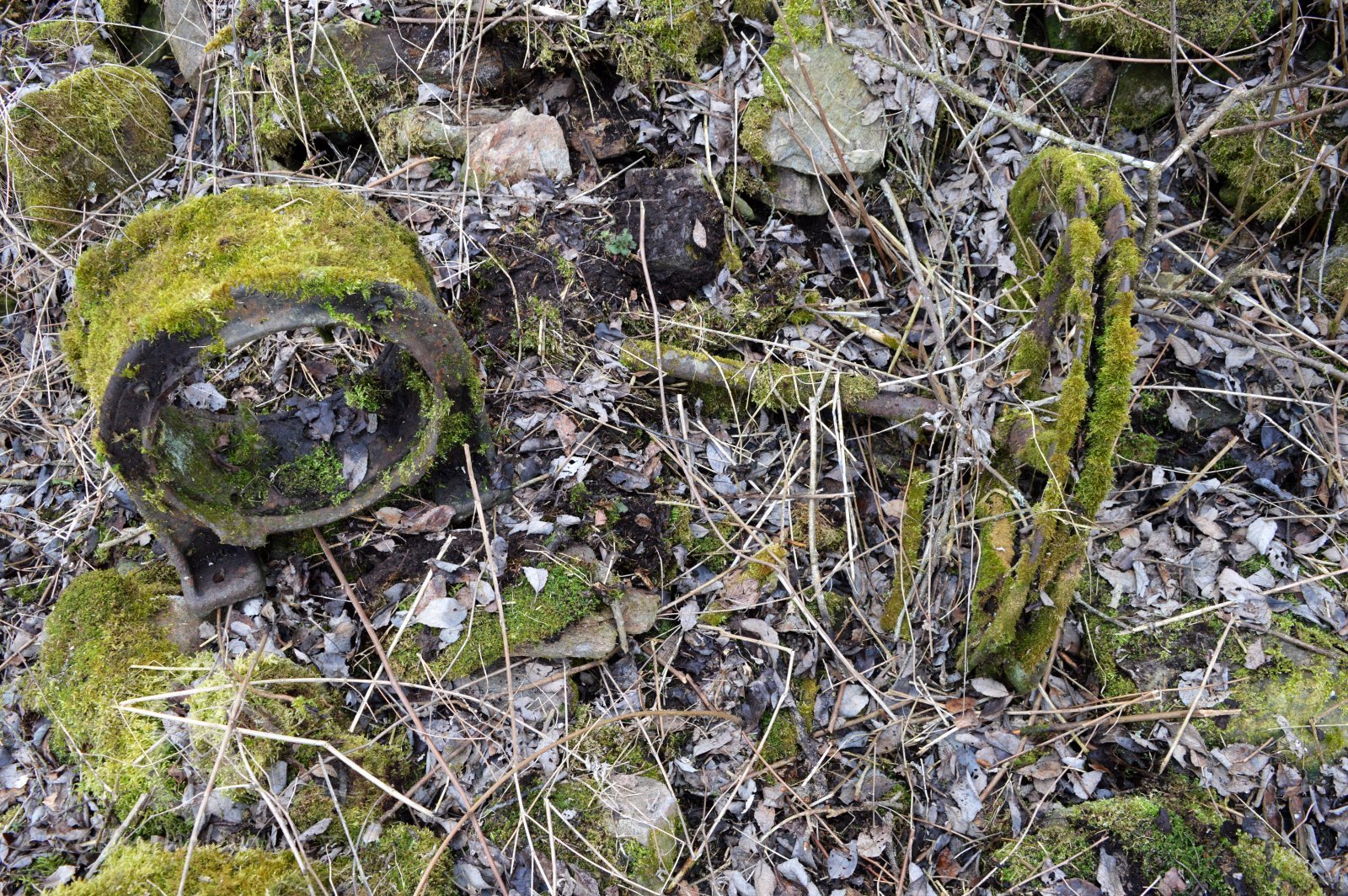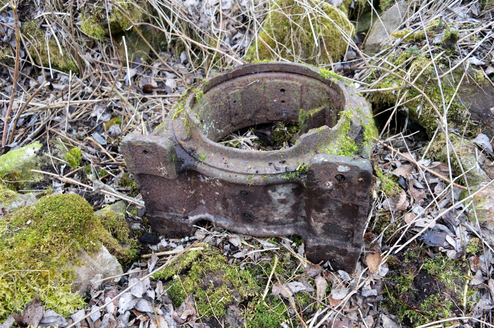 Zříceniny velkého mlýna v Cikánském údolí s pozůstatky zařízení.