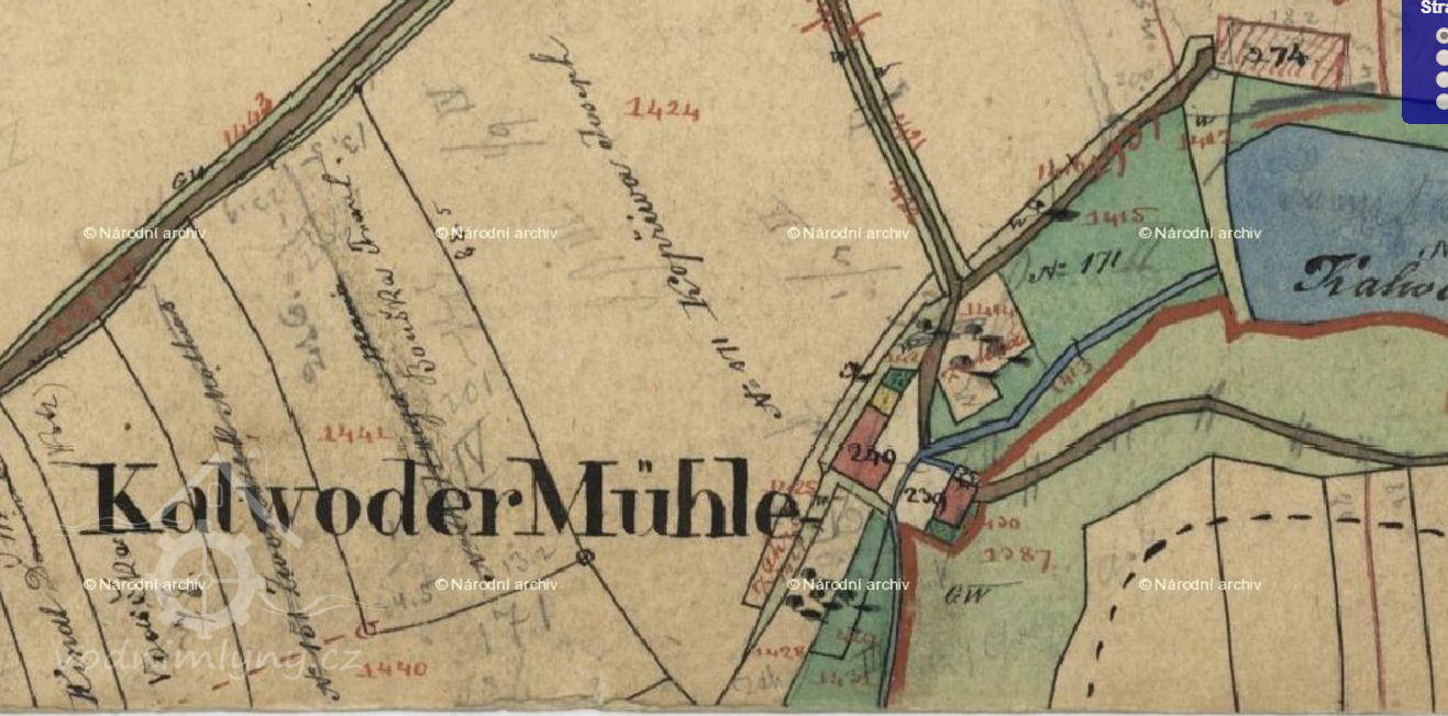 První zastávkou byl Kalivodův mlýn, také Kopřivův mlýn č.p. 171, Unhošť, který leží na horním toku Černého potoka. Nejstarší historie mlýna neznámá. První zmínky o mlýně jsou až z 18. století. Do roku 1876 nesl mlýn název Kalivodův, od roku 1876 jsou známi první majitelé, manželé Josef a Marie Kopřivovi. Následnými majiteli byli manželé Václav a Alžběta Oličovi a od roku 1930 spoluvlastníci unhošťského pivovaru, Antonie Urbanová a bratři Josef, František a Emanuel Urbanovi.