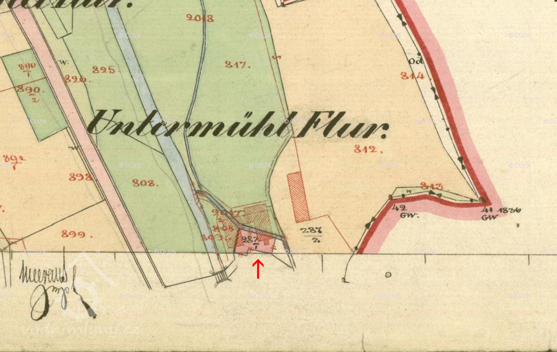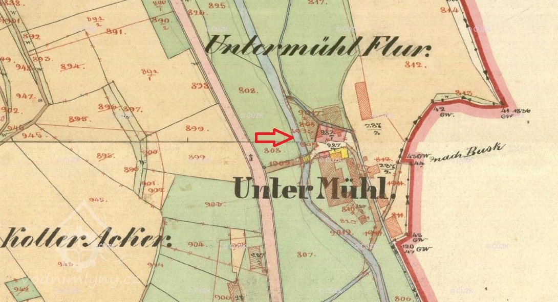 Velký mlýn zachycený na mapě stabilního katastru zanikl roku 1879 kdy na jeho místě vznikla sirkárna konsorcia Franc a August Mayerovi & Florian Fürst.