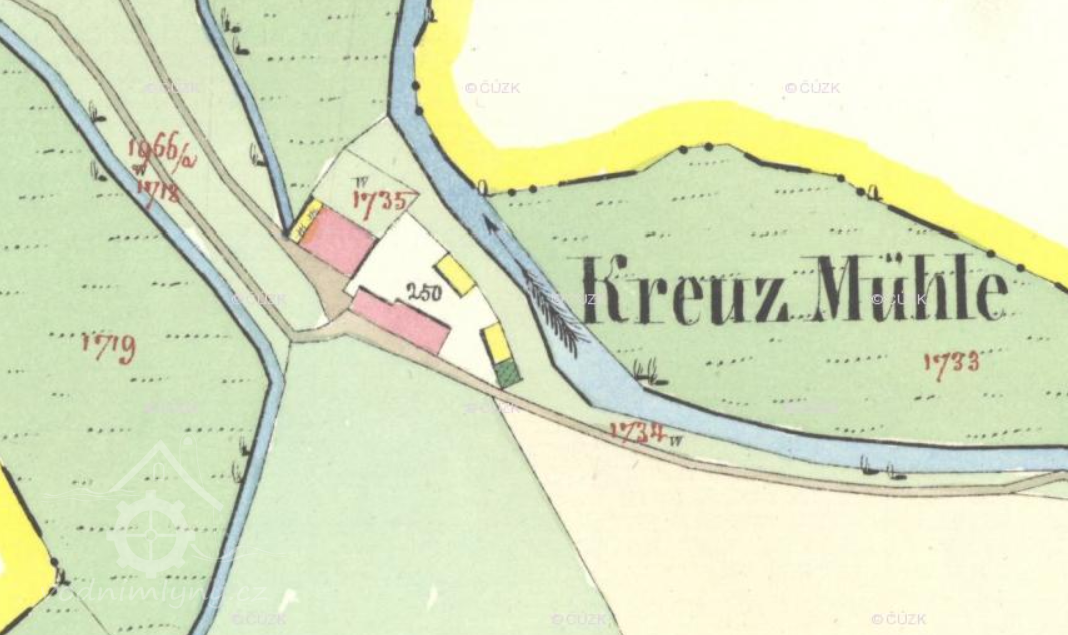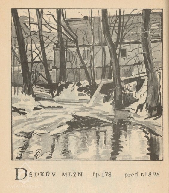 V roce 1930 byl majitelem mlýna, pily a polního hospodářství Václav Štěpánek z č.p. 178. V roce 1947 prodal Štěpánek mlýn Josefu a Marii Neprašovým, ti jej pronajali švagru Žiakovi. V roce 1950 byl mlýn znárodněn, byla zde sezónní prodejna Jednoty. Po roce 1989 zchátralé stavení mlýna změnilo nejen svoji podobu, ale i svůj účel. Dnes se v tomto objektu vyrábějí housle. V minulosti byl mlýn také nazýván Křížový, důvod jsem nezjistila. V letní sezóně funguje ve mlýně pivovar a občerstvení. Mlýn byl přestavěn ve stylu podnikatelského baroka, před západním průčelím je instalováno vodní kolo.