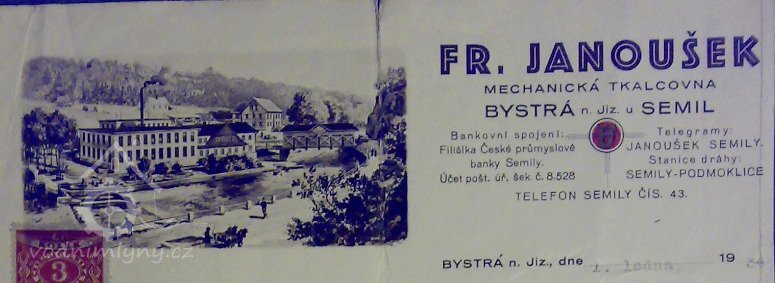 V roce 1930 byl majitelem mlýna a tkalcovny František Janoušek.