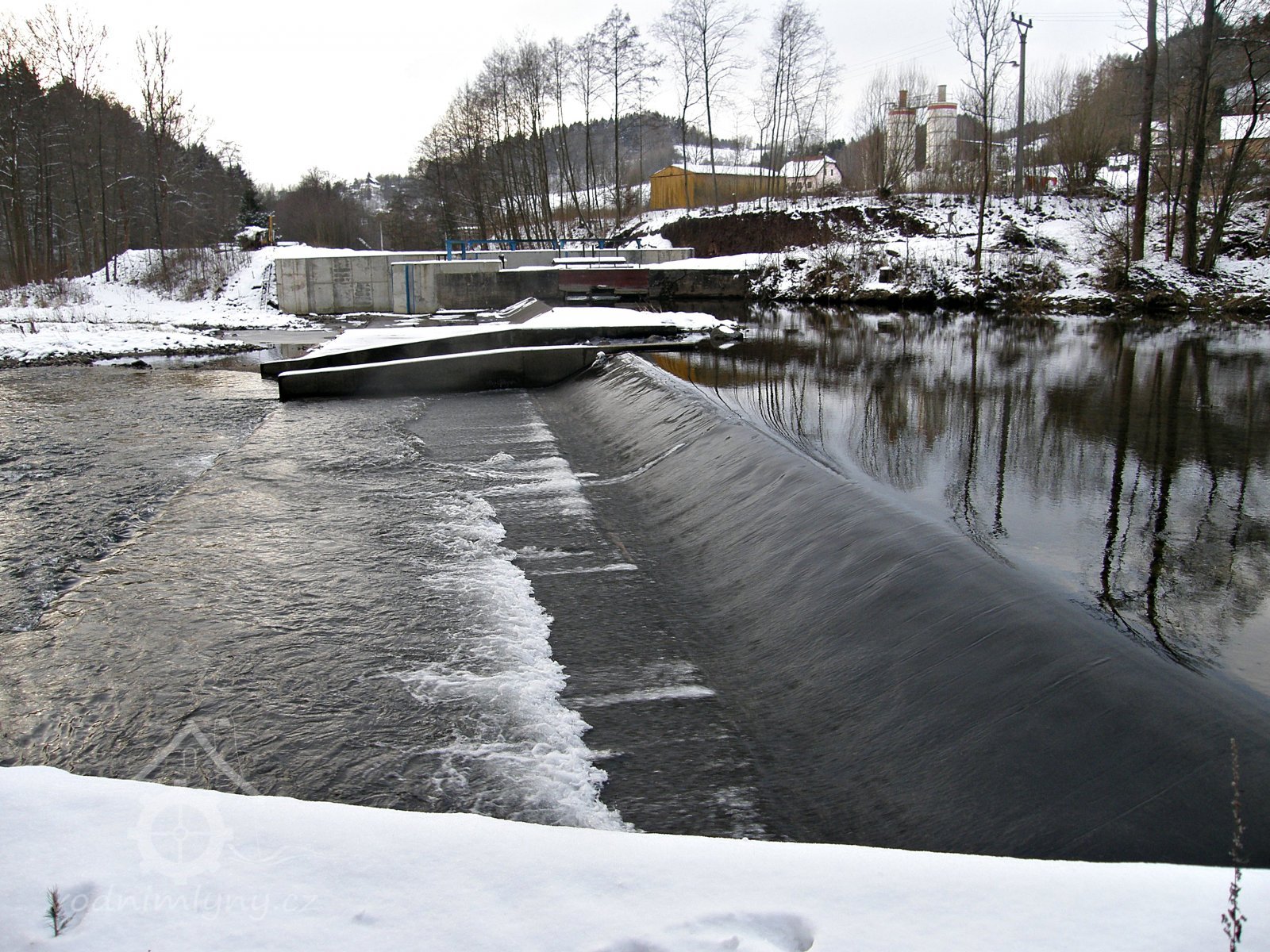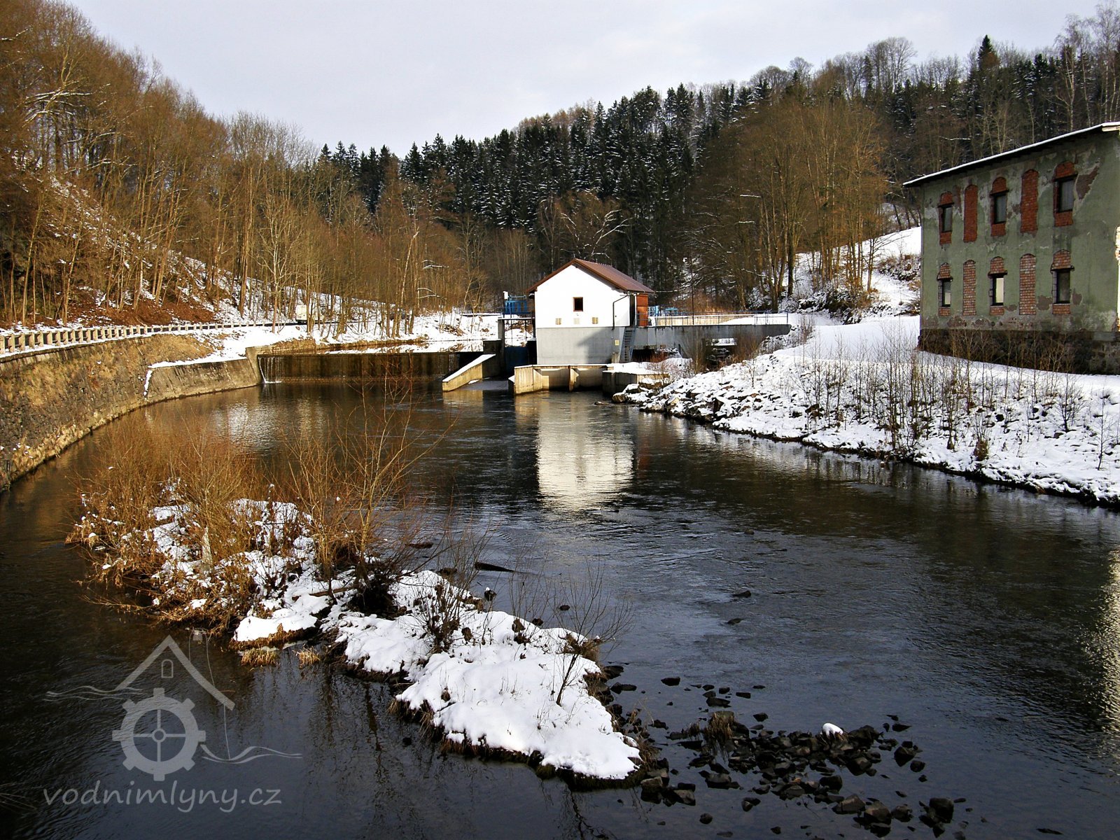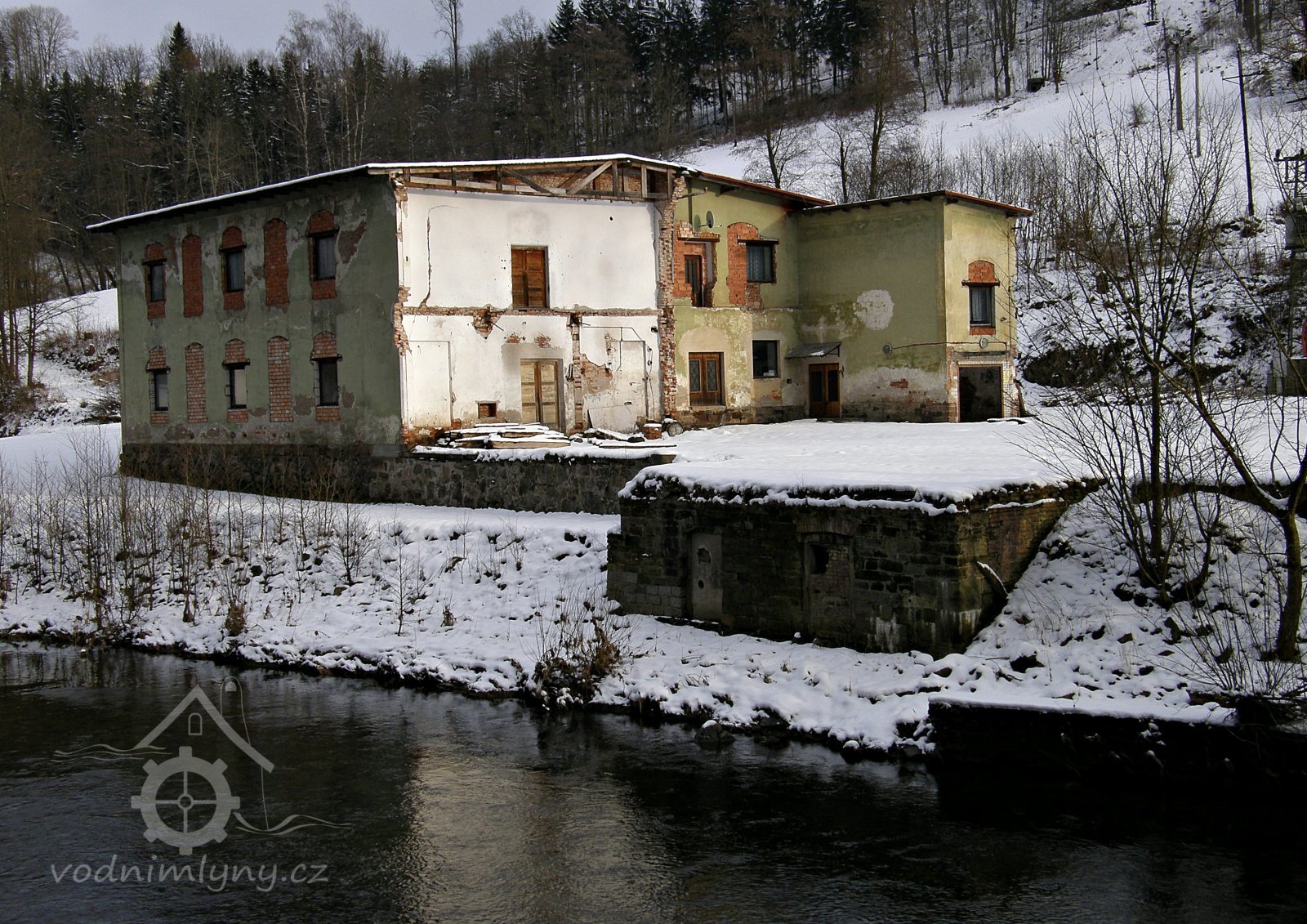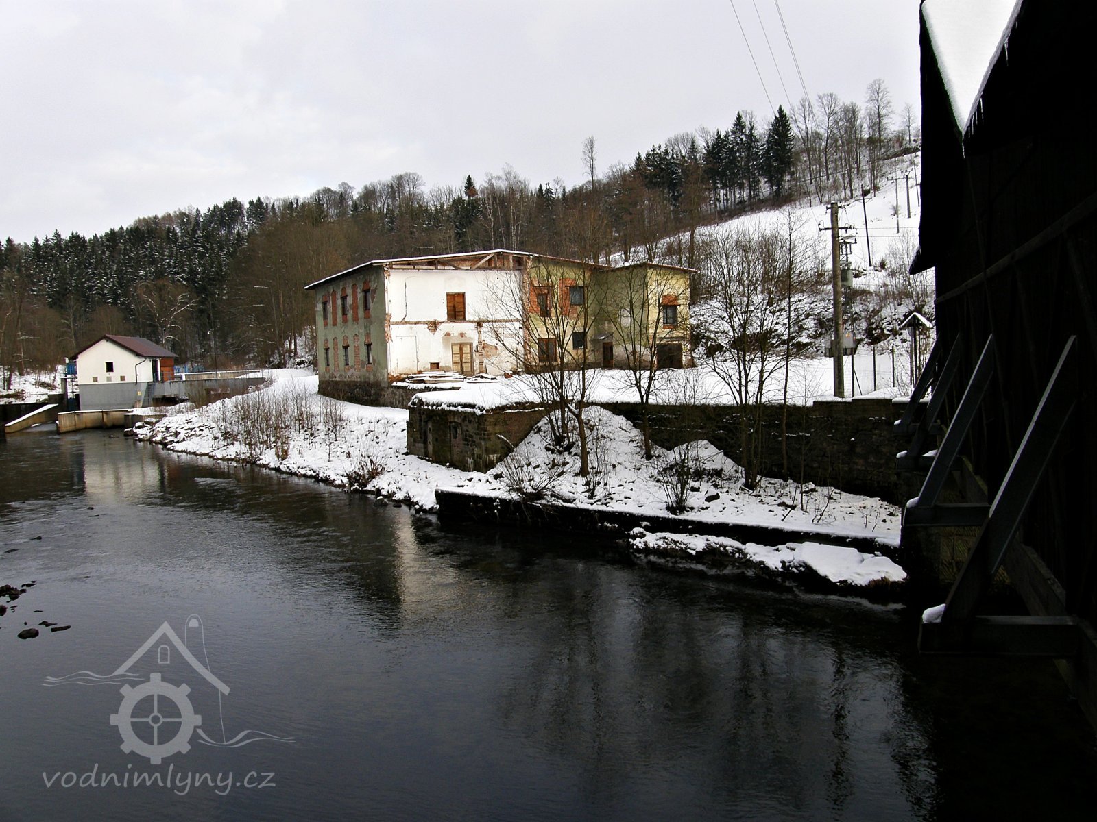 Původně zde stál roubený mlýn s brusírnou. V roce 1936 mlýn vyhořel a byl postaven nový. Roku 1903 byla brusírna upravena na tkalcovnu. Po pěti letech se dočkala tkalcovna nové budovy. Ta jediná zbyla z komplexu budov až do dnešní doby. Od roku 1979 byl v ní umístěn okresní archiv Semily. Nedaleko na jezu je v provozu MVE.