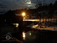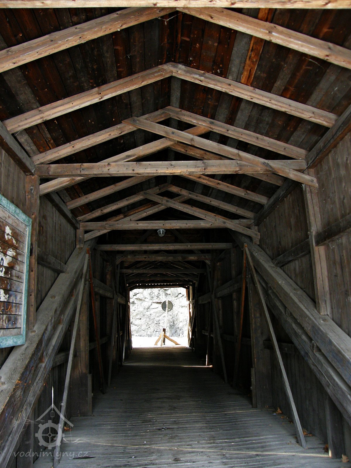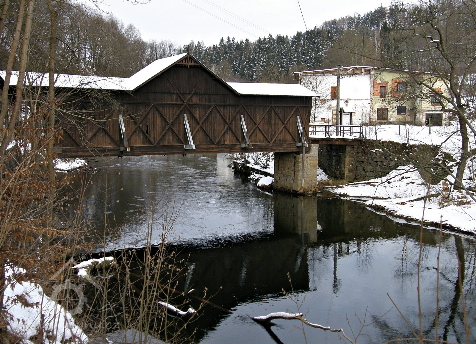 První dřevěný most přes Jizeru nechal postavit mlynář v r. 1893. Most nebyl zastřešený a v r. 1898 ho vzala velká voda. V roce 1922 nechal postavit mlynář Janoušek nový dřevěný, krytý most. Dřevo nechal dovézt až Vítkovic v Krkonoších. Most slouží svému účelu dodnes, je evropským unikátem.