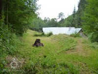 Roubená obytná budova a zděná mlýnice jsou postaveny do tvaru písmene L.