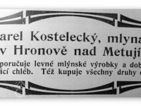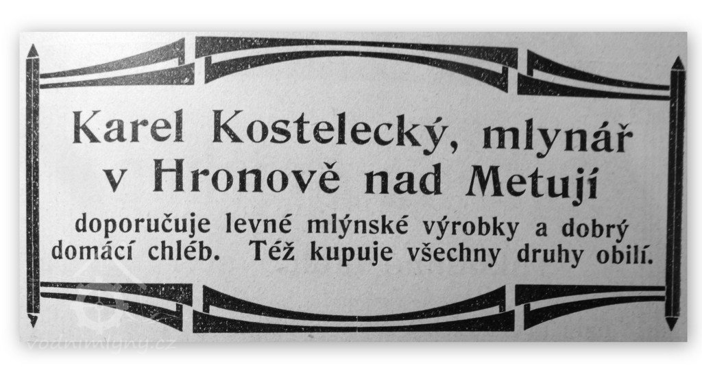 V této době sloužila voda z Metuje k pohonu turbíny, která vyráběla elektrický proud pro část Hronova.