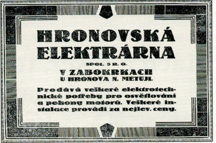O elektrizaci města Hronova se zasloužili manželé Hynek a Františka Židovi a jedním z prvních strojníků v této elektrárně byl Antonín Hnyk.