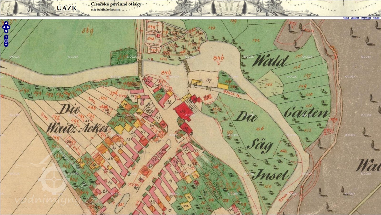 Mapa okolí mlýna, 1824, © císařské otisky stabilního katastru, historické mapy cuzk