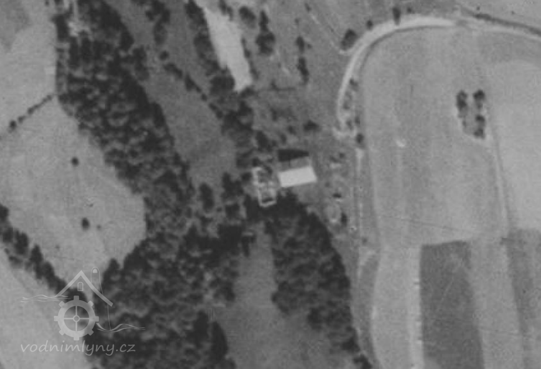 Na leteckém snímku z roku 1951 jsou u stojící obytné budovy zachyceny již pouze zříceniny mlýnice.