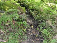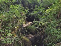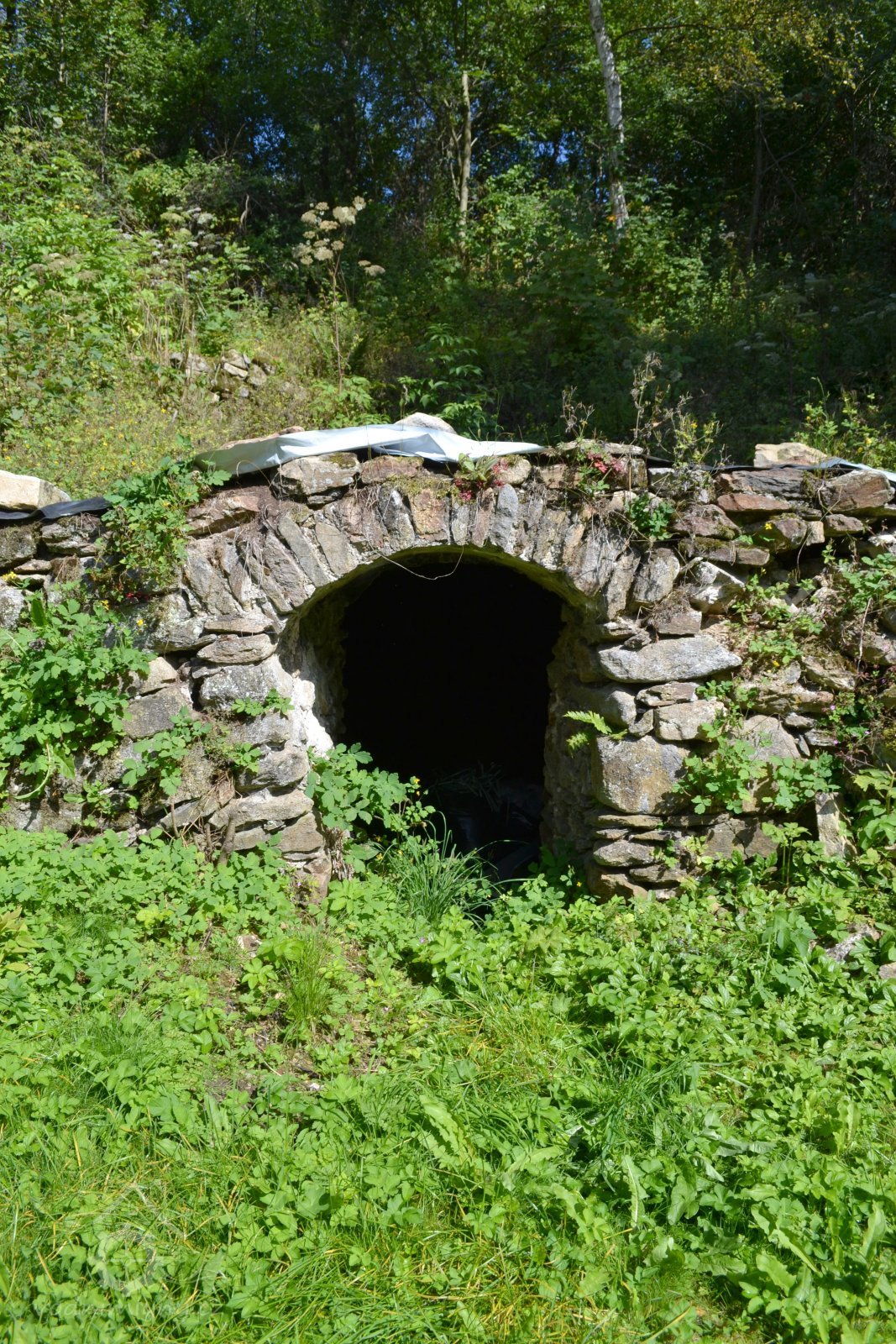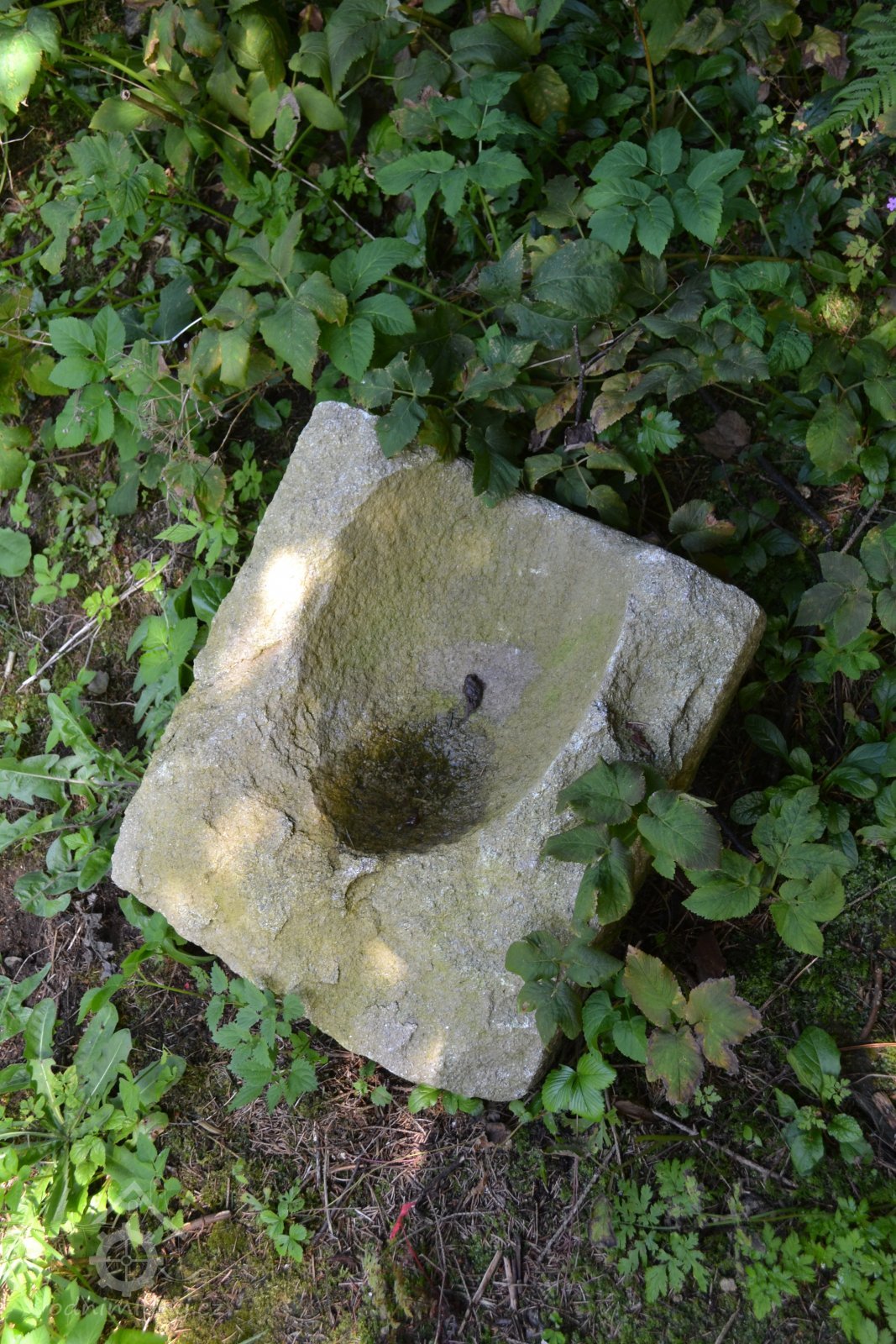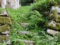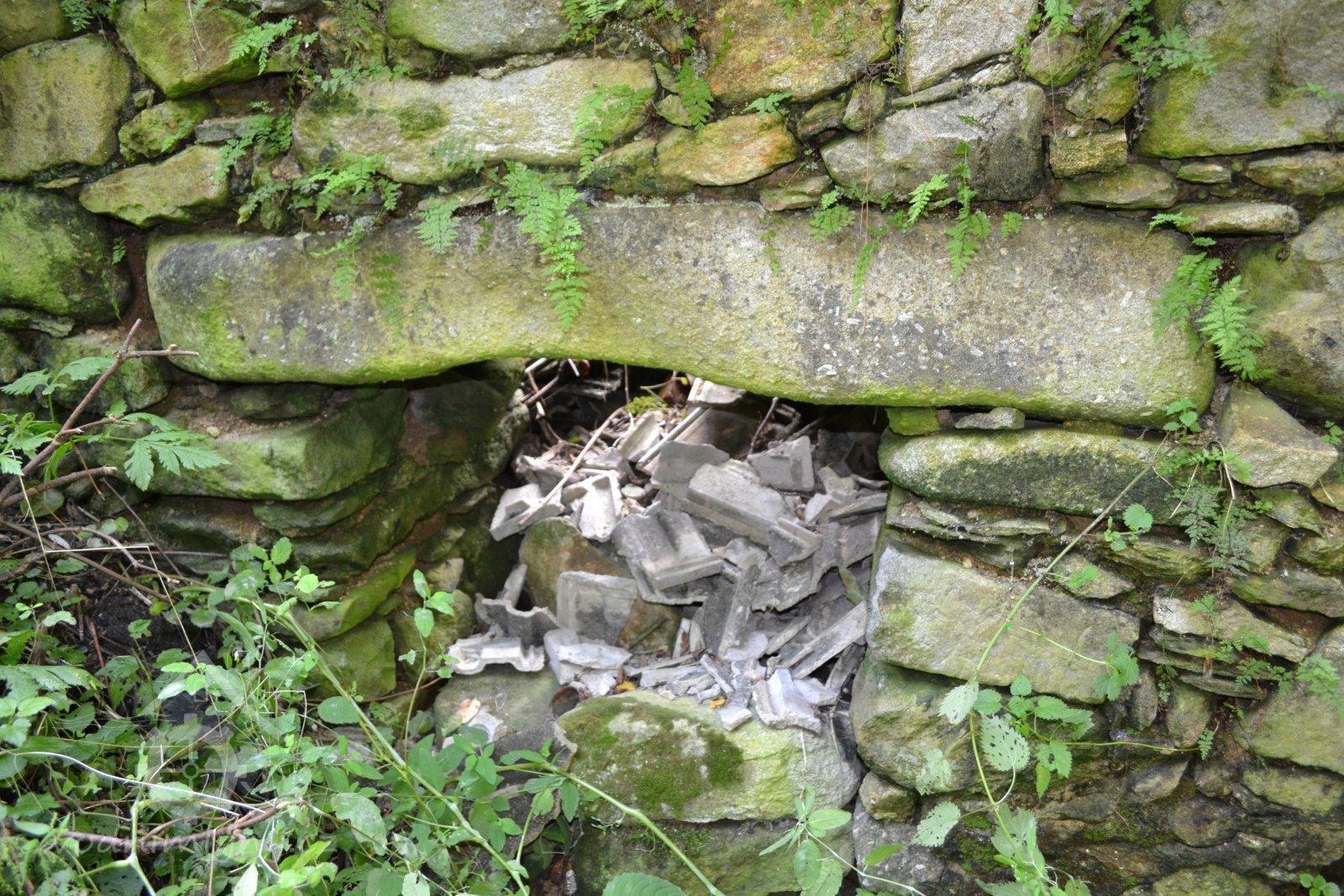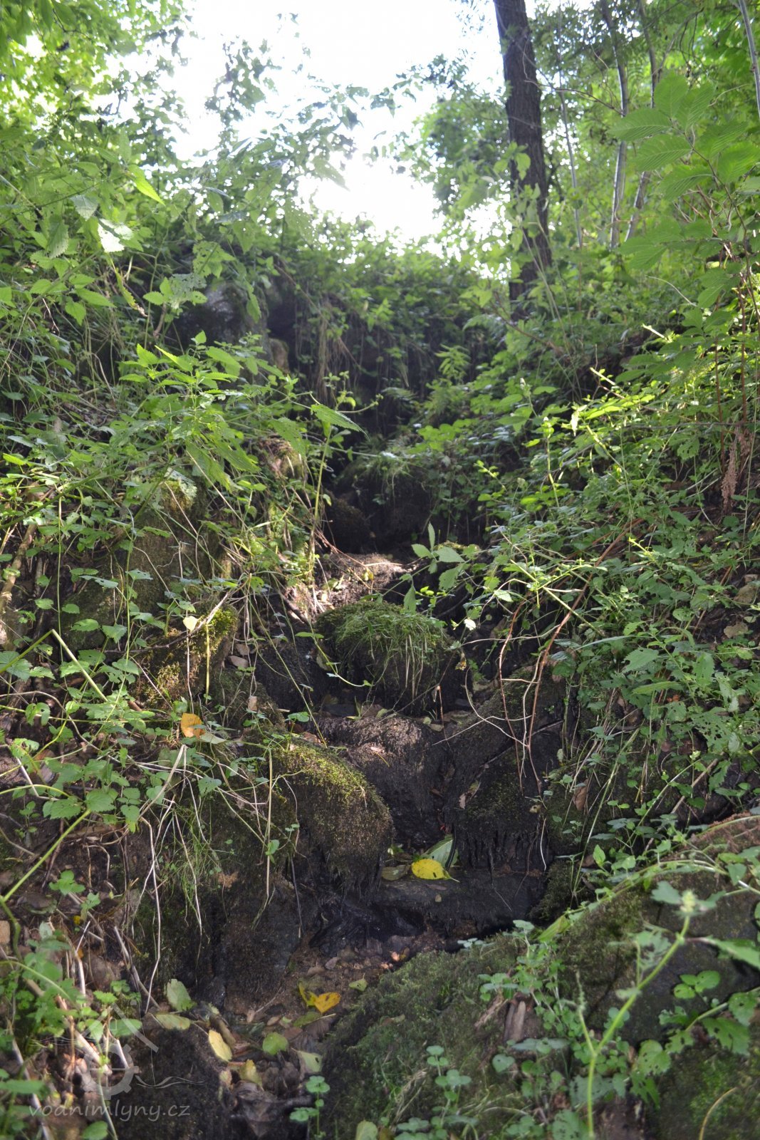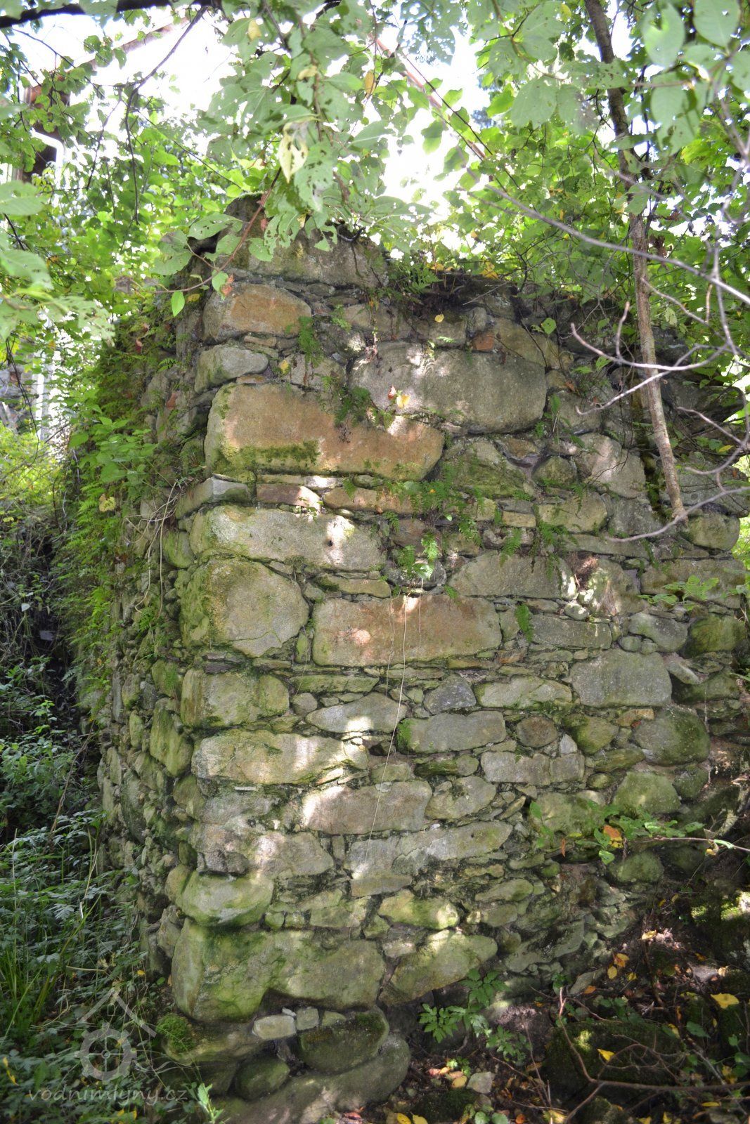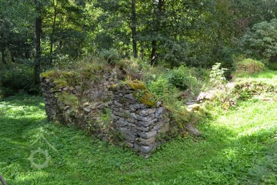 Nad mlýnem v hustém porostu jsou pozůstatky základového zdiva pily