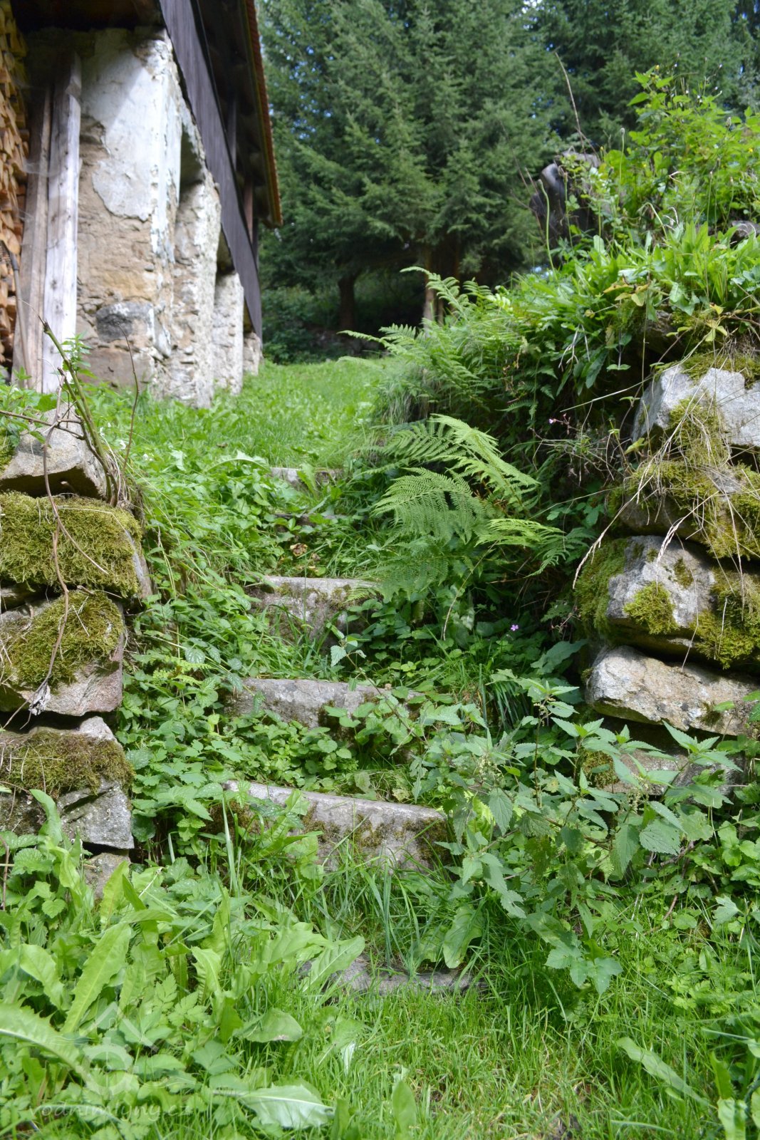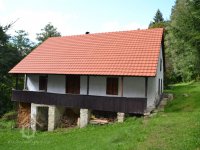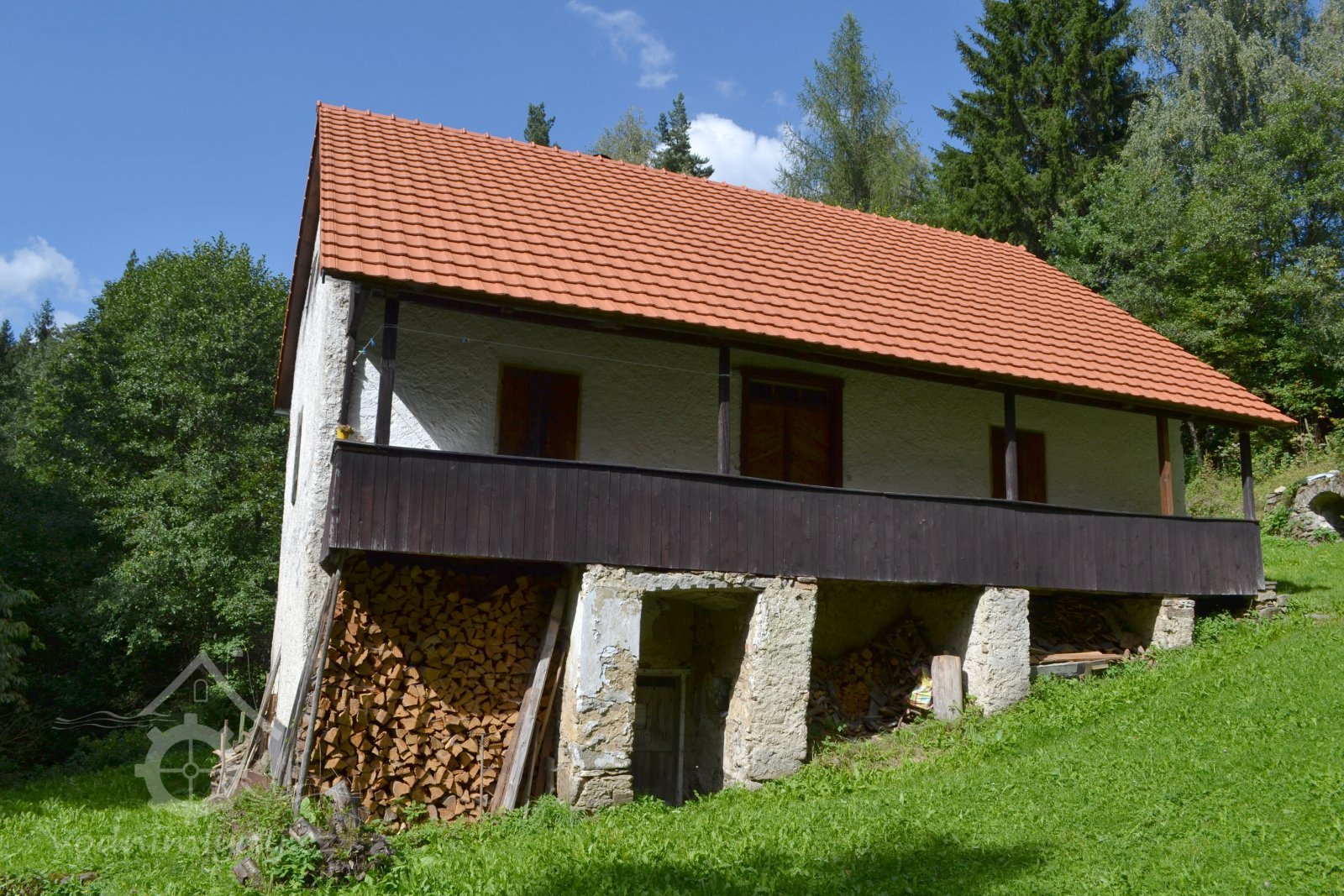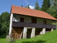 Obytná budova je směrem do svahu přízemní, směrem do údolí patrová.