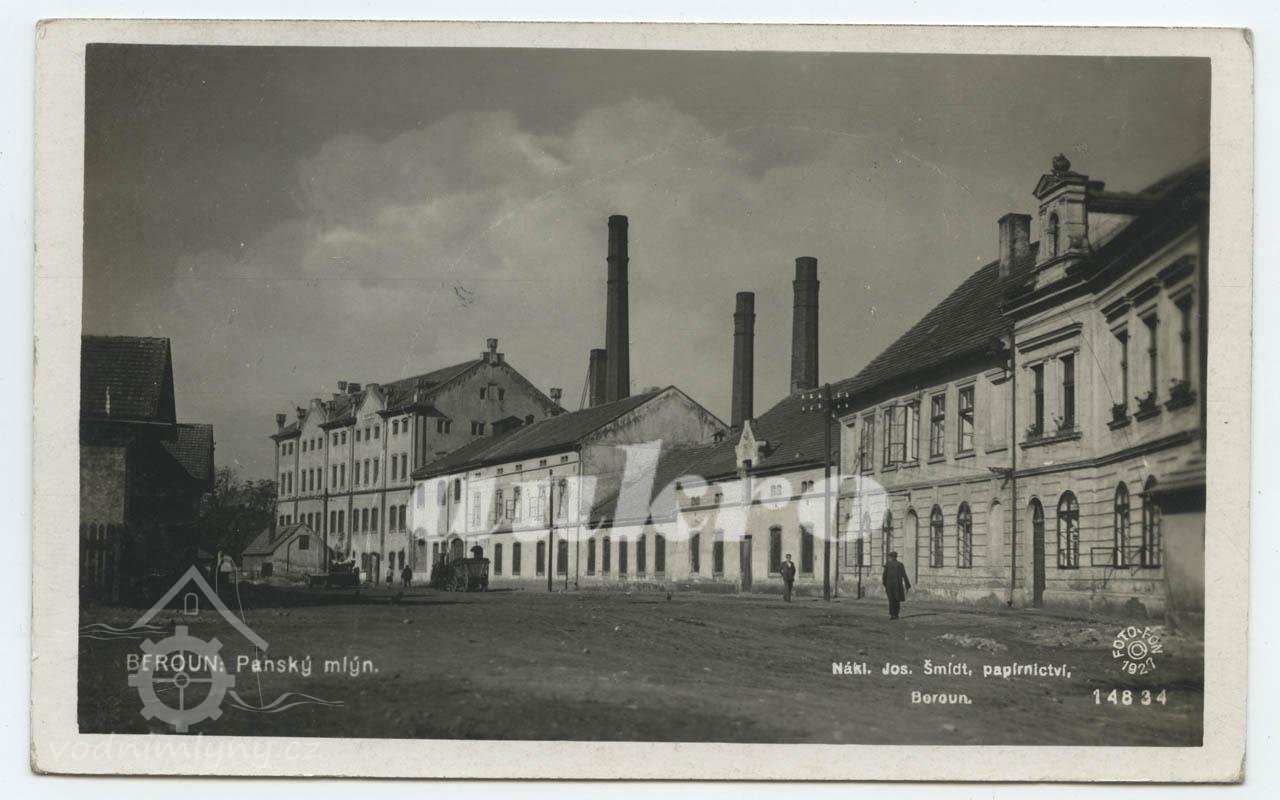 První zmínka o Panském mlýnu je z počátku 16. století. Hovoří se o tom, že město Beroun se kromě mlýna u Dolní brány roku 1515 ujalo též mlýna Maňasovského na ostrově (Hořejšího ostrovního) a "jej spravovalo až do roku 1546 a dostávalo za to 43 1/2 kopy za rok". Také v soupisu městského jmění z roku 1520 se uvádí: "Dále držela obec mlýn u Dolejší brány, s pilou a vedením vody. Hrubý výnos toho mlýna byl do roka v průměru 62 1/2 kopy, z čehož užil obecní mlynář, zvaný ,obecka', 22 1/2 kopy." Dál se zveřejňuje, že v letech 1508-18 byli v Obecním mlýně chováni v hojném počtu vepři na žír a prodáni "za 195 1/2 kopy pro obecní měšec". Rovněž roku 1566 tu "koupil Balcar, Němec od saského Arsberku, 12 krmných vepřů za 37 1/2 kopy". Aby výčet příjmů z Panského mlýna byl úplný, uveďme, že v roce 1564 se za šrotování sladu vybralo 37-46 kop. Z toho ovšem museli být placeni městští mlýnští pracovníci i městský vodák. Dále "vynášela v tom mlýně šejdovna, pronajatá roku 1561-1577 od městských pekařů, ročních 30-50 kop".