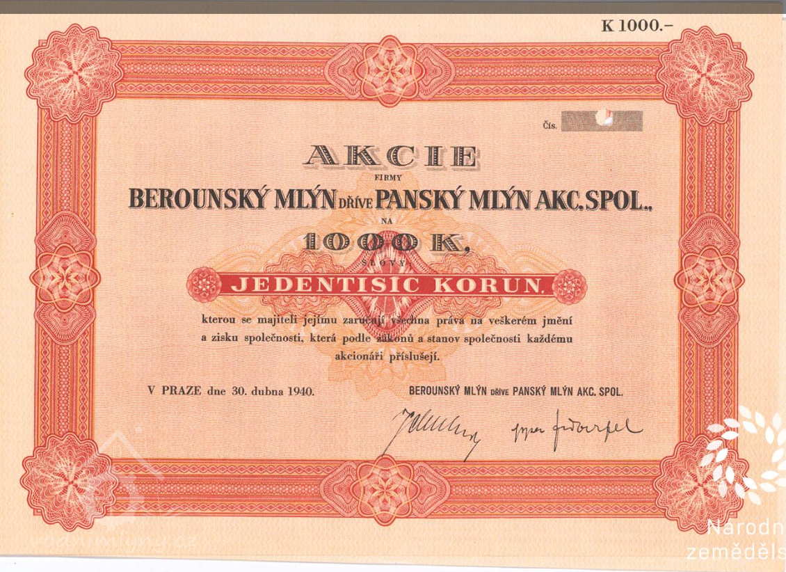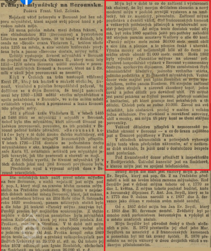 V roce 1790 Dočekal mlýn přenechal Šimonu Škodovi za 3 000 zlatých a úrok 200 zlatých ročně. Škoda mlýn zvelebil a rozšířil, takže měl již ,,3 složení, švábský krupník, pilu, 2 košiny, 6 hasačertů, 6 násypek a troje žejbrování", a roku 1797 jej prodal Františku Kinskému za 4 600 zlatých a úrok. Od Kinského mlýn roku 1809 za 16 000 zlatých v papírových bankovkách (bankocetlích či šajnech) koupil František Kulhánek z Hudlic, po němž jej roku 1830 zdědil syn Antonín. Dalšími majiteli Panského mlýna byli Josef Prošek z Hudlic, továrník Kubinský, Ignác a následně Hynek Roubíčkovi. Ignác mlýn opět vylepšil a rozšířil. Mimoto roku 1849 Berounu zaplatil jistý obnos, jímž mlýn vykoupil z břemena úroku.