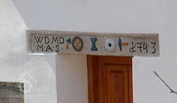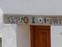 detail prostoru dveří - via FB (edit PK), 3/2020, © Růžena Jakubíková, (Prvky na obrázku: dveře, epigrafické památky (nápisy, datování aj.), plastická omítková výzdoba fasád a štítů, umělecké prvky (sochy, malby, reliéfy))