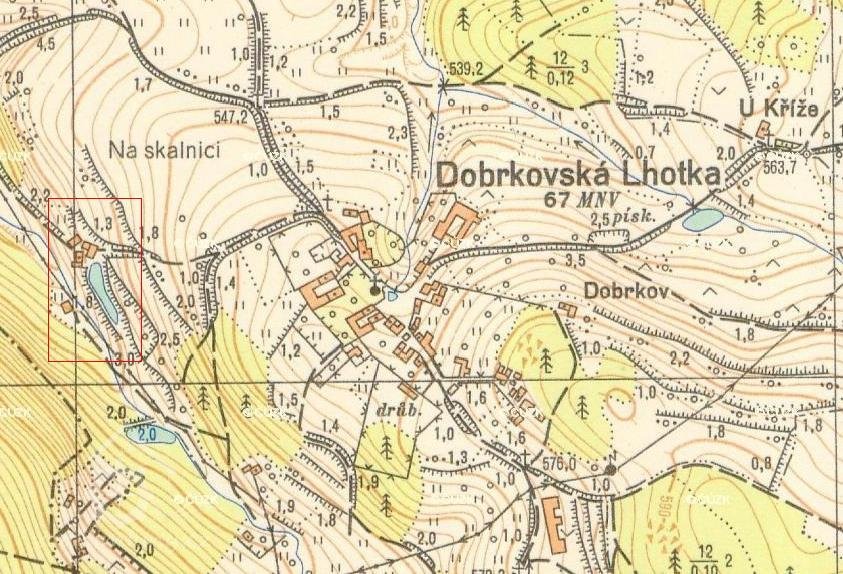 kaplička zezadu, stodola a mezník před mlýnem, via FB (edit PK), 3/2020, © Růžena Jakubíková, (Prvky na obrázku: drobné sakrální památky)