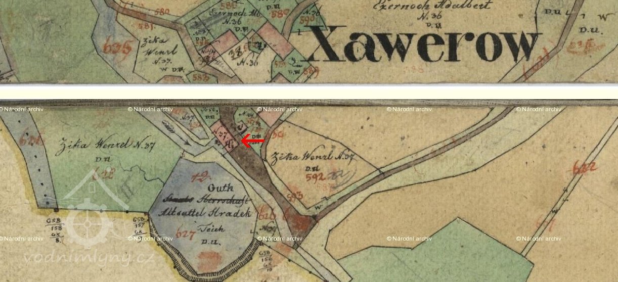 1605 v pondělí po památce sv. Pavla na víru obrácení pan Adam z Lokšan, vrchností na Březnici, „sfrejmarčil“, tedy směnil mlýn Dubovský (dnešní Xaverov) s Jiřím, synem Jana pekaře, jinak Voršilky, za jeho mlýn Pod městem, co „slove Karasovský“
