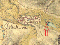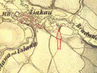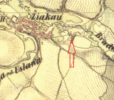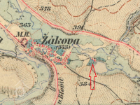1 km východně od kostela sv. Vavřince v Žákavě