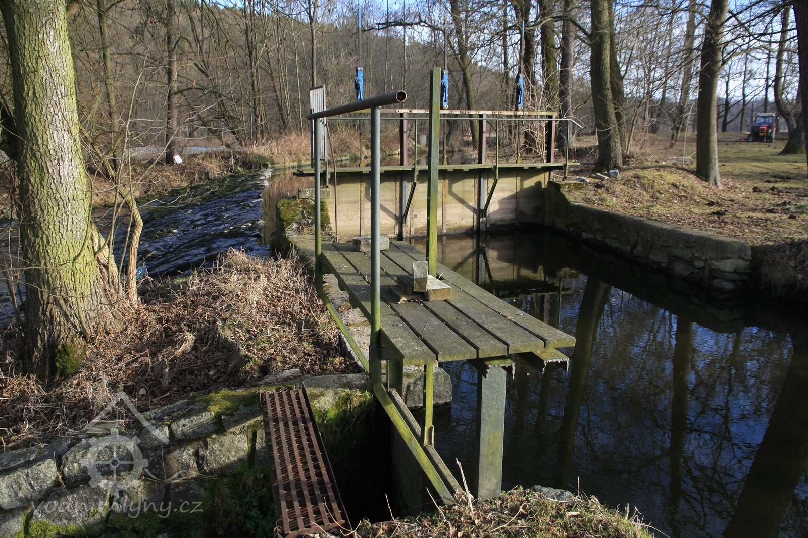 Druhý jez, stavidla a jalovák, 2014, © Šimek, (Prvky na obrázku: jez, jalový žlab, stavidlo)