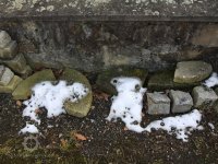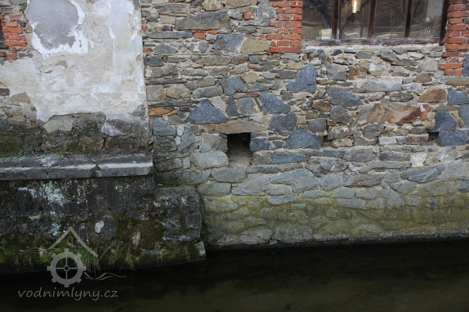 Část návodní zdi s otvorem pro odpad, 2014, © Šimek