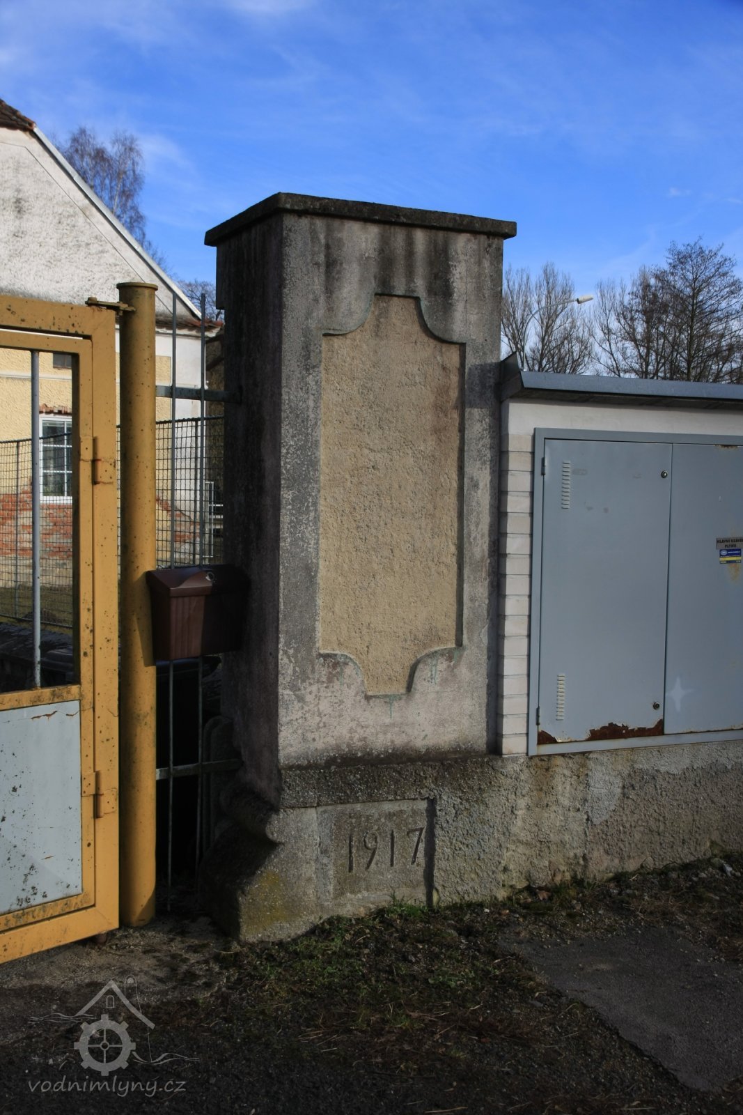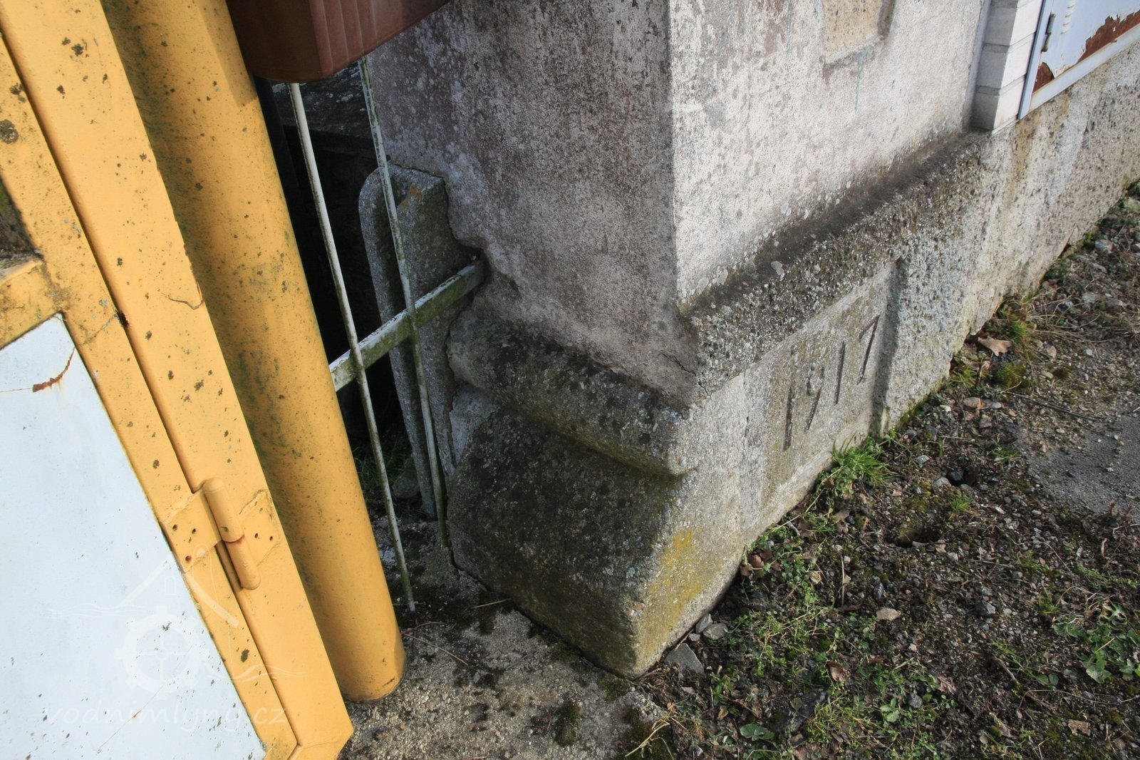 Pilíř brány s letopočtem, 2014, © Šimek, (Prvky na obrázku: dveře, epigrafické památky (nápisy, datování aj.))