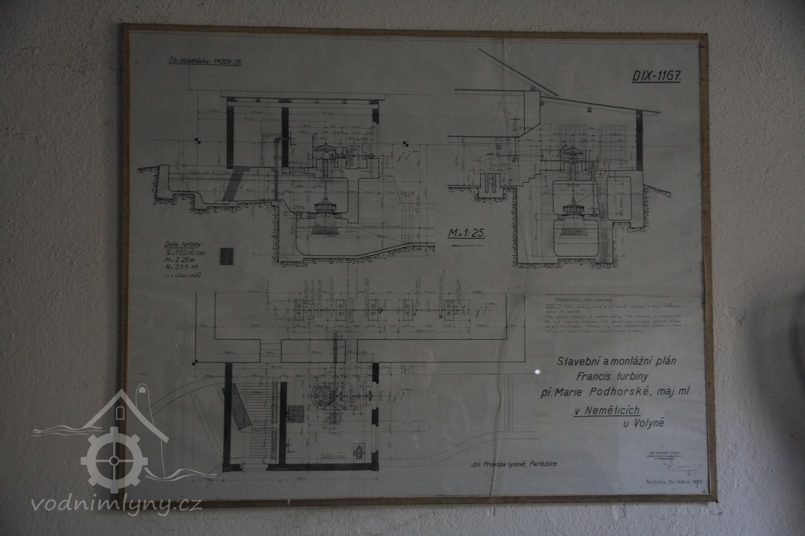 Francisova vertikální turbína, 2014, © Šimek, (Prvky na obrázku: Turbína, výroba elektrické energie)