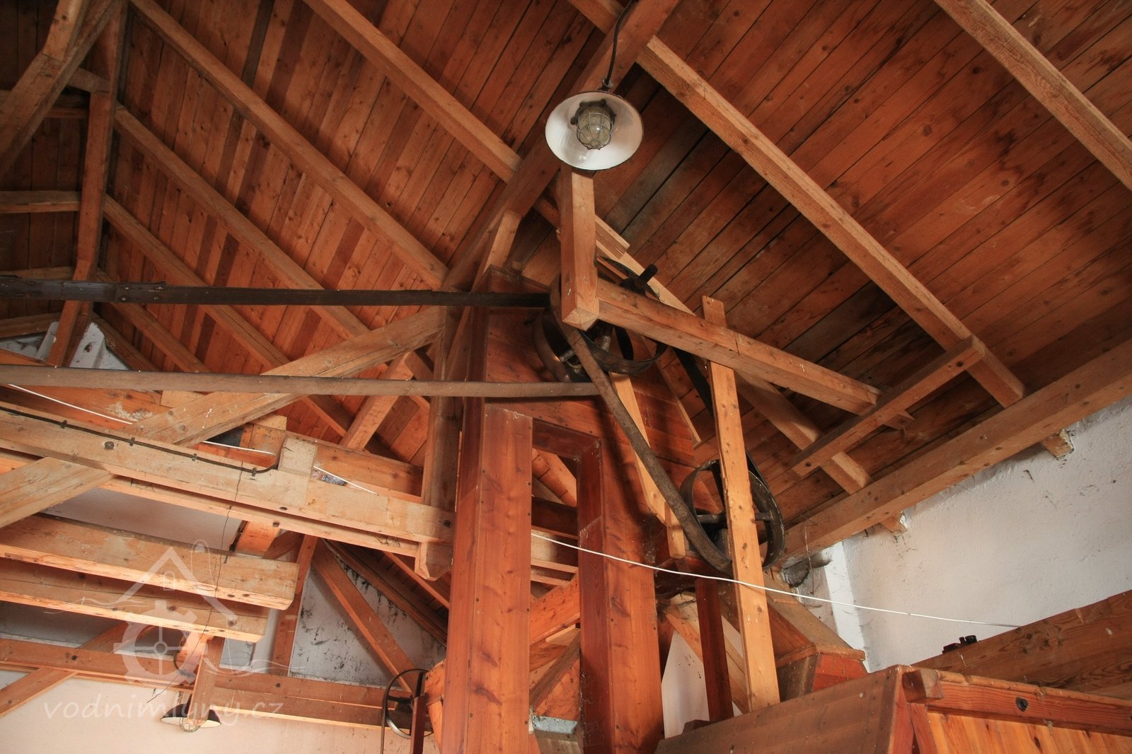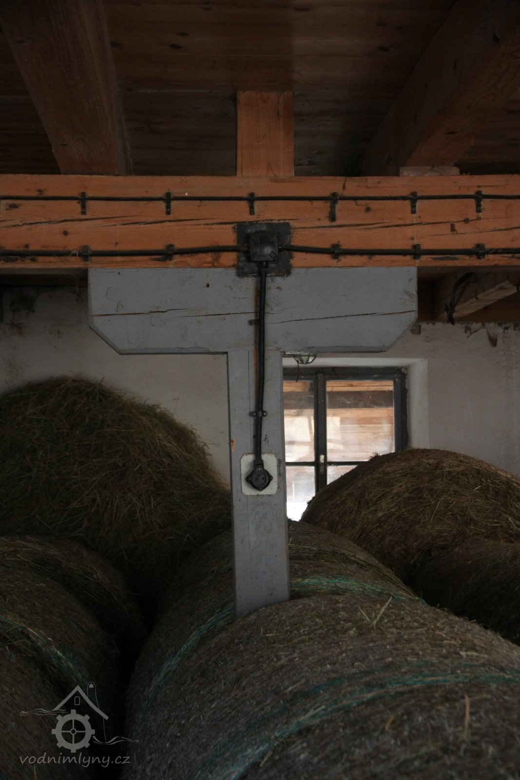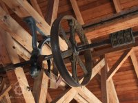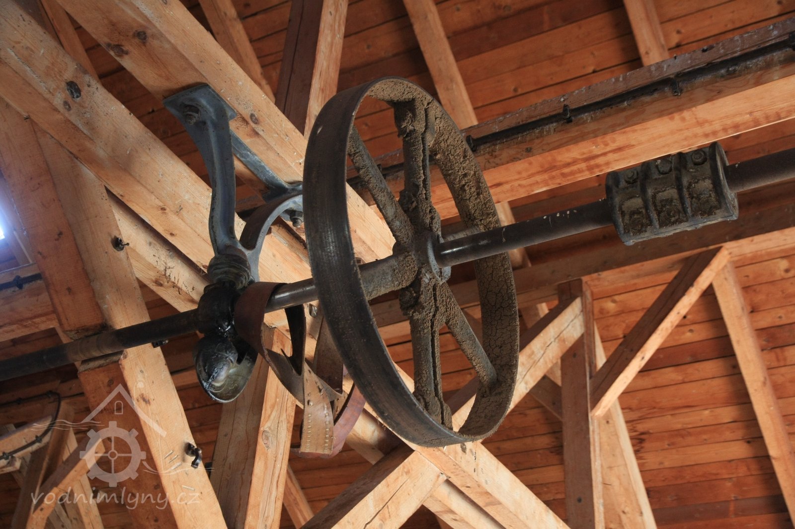 Detail řemenice v podstřeší, 2014, © Šimek, (Prvky na obrázku: transmise, řemenice, převody)