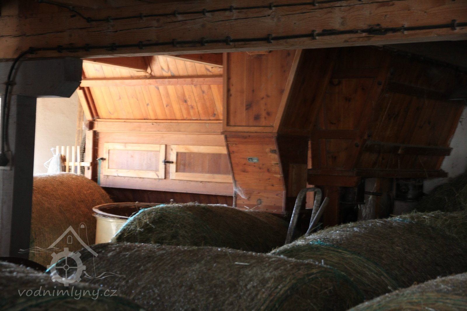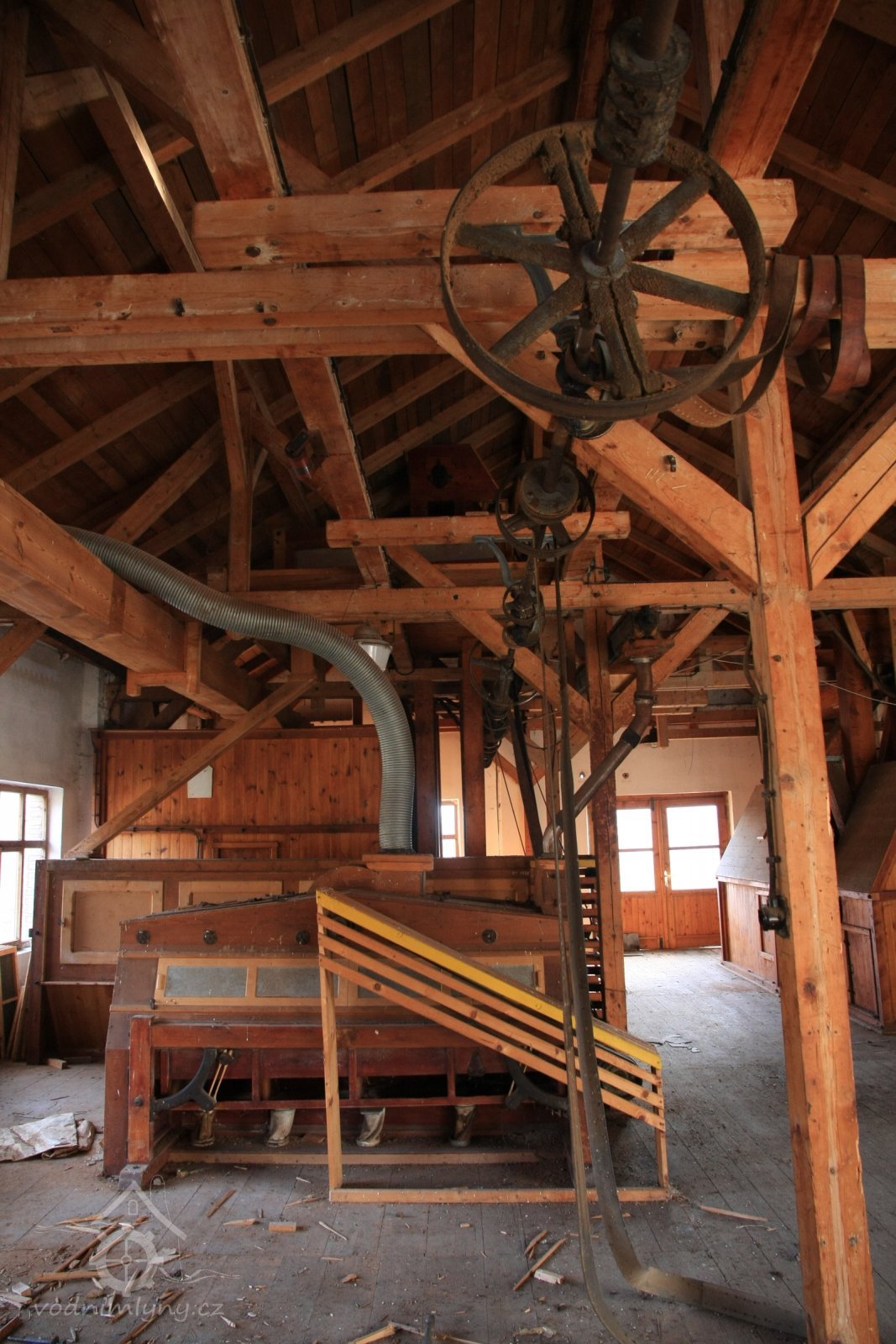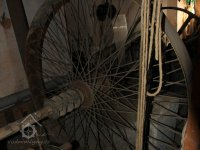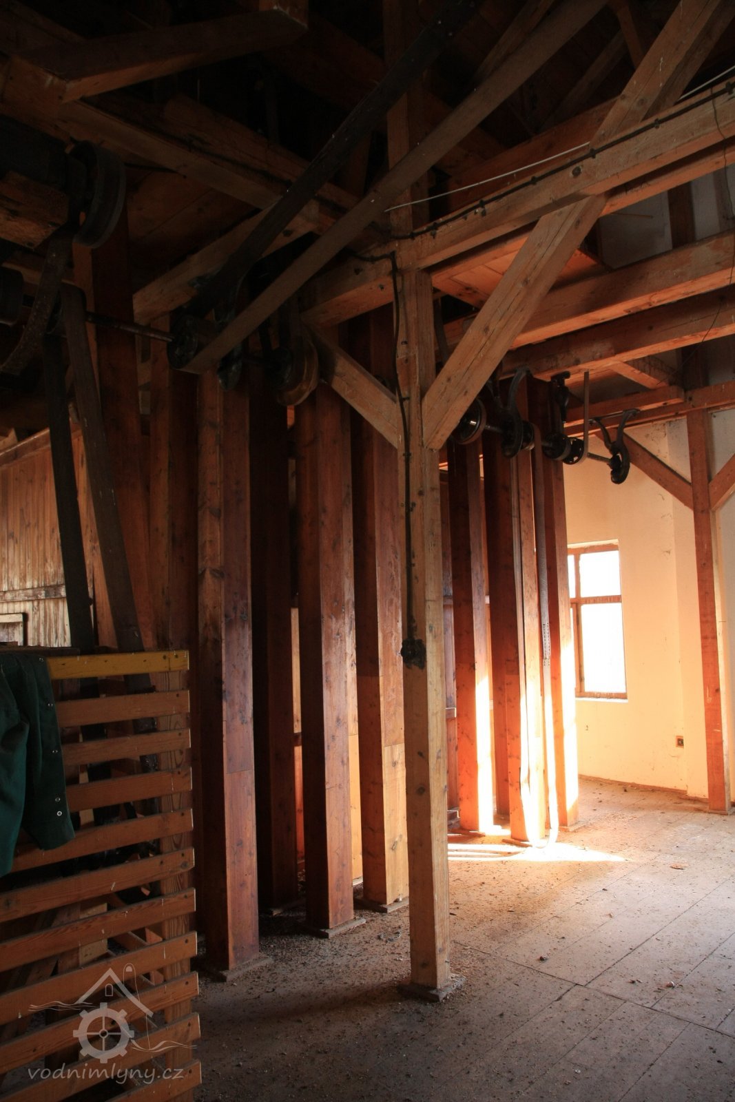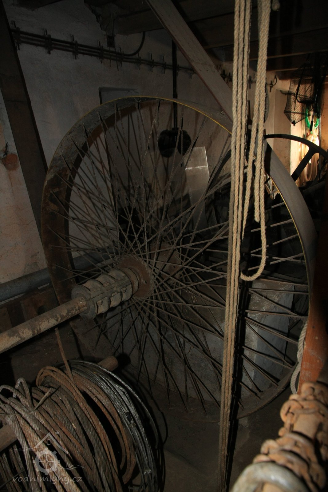 Detail řemenice v podstřeší, 2014, © Šimek, (Prvky na obrázku: transmise, řemenice, převody)