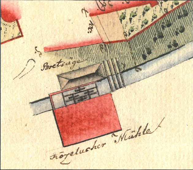 Začátkem 18. století byl mlýn nazýván koželužský podle nedaleké koželužské stoupy.