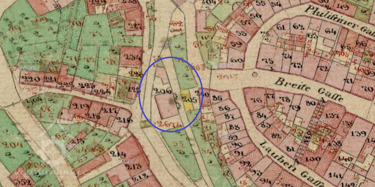 Popis1704,1810,1875: 3 kola na spodní vodu
