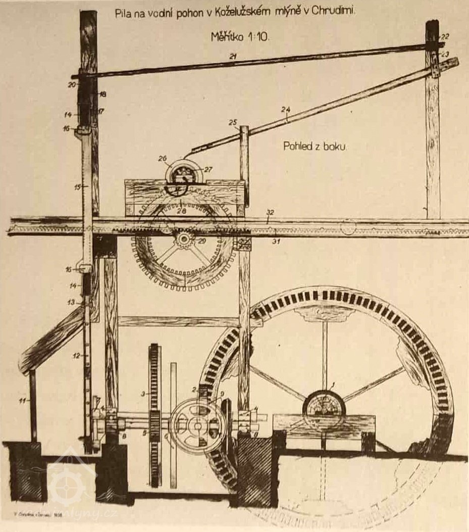 1932 po požáru instalována jednolistá pila se schopností zpracovávat velmi silné klády, které jinde nepořezali. Tradiční řešení vylepšené litinovým setrvačníkem a soukolím s dřevěnými palci. Pohon kolem na spodní vodu.