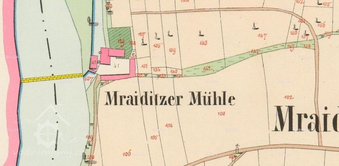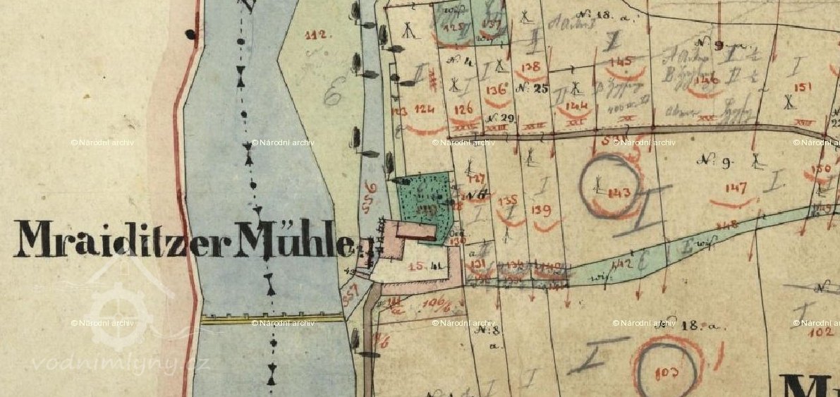 Mlýn není vyobrazen na I. vojenském mapování. Nejspíš tedy vznikl až po roce 1768.