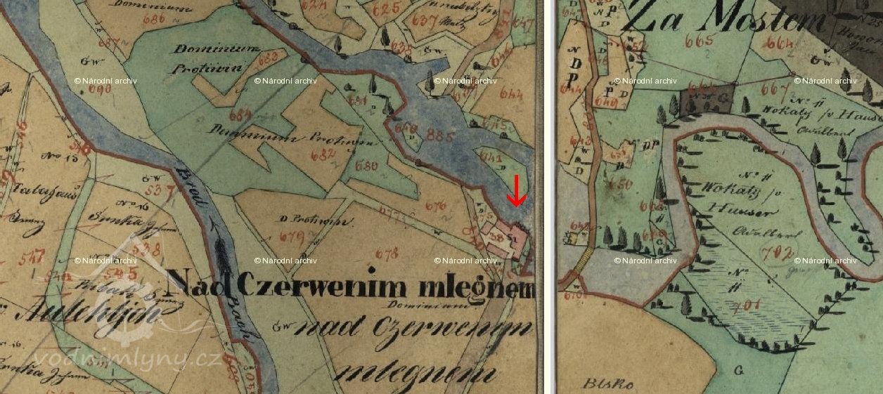 A jsme u dalšího mlýnského objektu s poetickým názvem Červený. Z dob jeho nejstarší historie se vyskytuje zpráva o jeho založení rytířem Ivanem údajně kolem roku 1400. ,,Dne 7. března roku 1588 bylo městečko Heřmaň s podacím a dvěma mlýnci pod ním, dvorem, vsí Humňany a dalším prodáno městu Písek Janem Vilémem ze Švamberka, dosavadním majitelem. "Tato zpráva Augusta Sedláčka dosvědčuje existenci obou mlýnů v Heřmani. Za války třicetileté v roce 1619 a 1620 bylo městečko značně poničeno a zřejmě s ním i mlýny. Stav z roku 1628 dokumentuje, že je zde pouze 6 osedlých, 21 gruntů shořelých, 5 chalupníků a 2 krčmy. Podnikavému Mikuláši Radkovci z Mirovic, který Heřmaň roku 1640 koupil, se podařilo v poměrně krátkém čase poničenou ves znovu vystavět a osadit novými poddanými. Prastará listina zřejmě z roku 1622 popisuje, co mlynář Červeného mlýna Václav Procházka na tomto mlýně opravil. Nebylo toho málo: "Předně jedno kolo s kameny novými - od něho jedna kopa. Druhý kolo palečný s palci novými, kteréž pracně dříví z lesa na svejch ramenou nanosil, naskrze všecko vobil ...“ a tak dlouhý výčet prací pokračuje doplněný částkou peněz ynaloženou na tyto opravy. Zároveň má mlynář obavy o svoji existenci: "Na rozkaz purkmistra a Pánů města Písku na ten mlejn z Božovského dal jsem se a tomu sem se nenadál, když jsem jej namísto spravil, abych jej jinému postoupiti měl. Pro Boha žádám jich milosti pánů, že to ve svém milostivém uvážení míti ráčí - Vaší Milosti v službách volný Václav Procházka.“