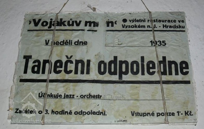 Mlýn měl povoleno prodávat lahvové pivo. U potoka pod mlýnem bylo na louce sbito několik dřevěných stolů a lavic k posezení a kuželník. V 80. letech 19. století se ve mlýně pořádaly nedělní muziky. I po požáru (v roce 1913) zde pokračoval kulturní život. Noví majitelé přistavěli taneční sál a verandu pro muzikanty, u potoka zbudovali střelnici, kuželník a na louce vedle mlýna se hrávalo divadlo. Každý týden rovněž pořádali taneční večírky.