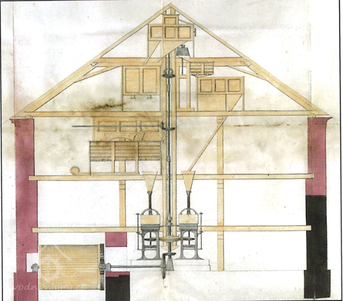 1857: umělecké "amerikánské" složení (1. na Chrudimsku) s převody ještě bez řemenů. Vybavení je rozloženo do pěti podlaží, jejichž středem prochází svislá královská hřídel k pohonu všech strojů.