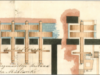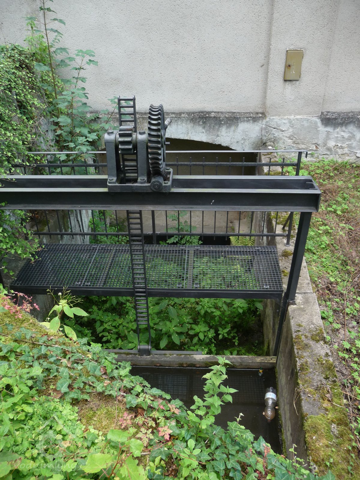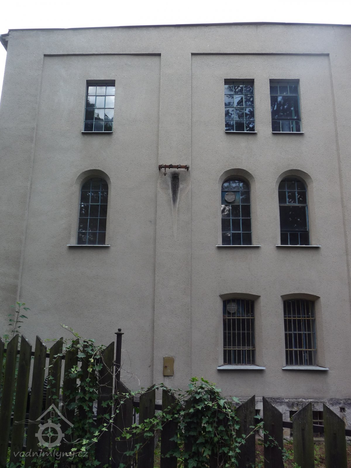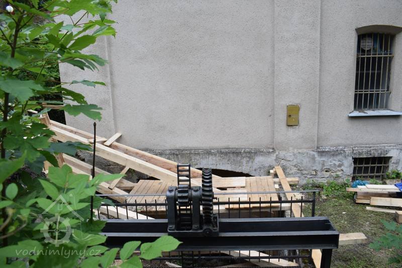 Hlavní paleční kolo je přímo na boku vodního kola v lednici a od něho jdou do strojovny již 2 kovové hřídele zpřevodované na větší rychlost.