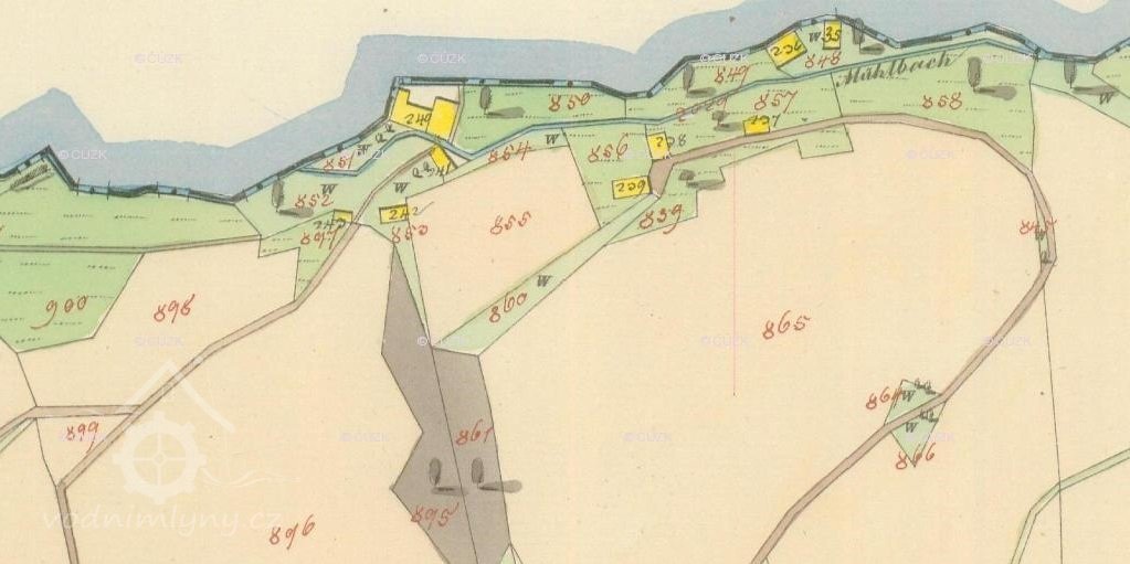 Bývalý mlýn jehož počátky sahají do roku 1456 s velkými lesními pozemky. Mlýn je po několika rekonstrukcích zděný a nachází se na polosamotě.