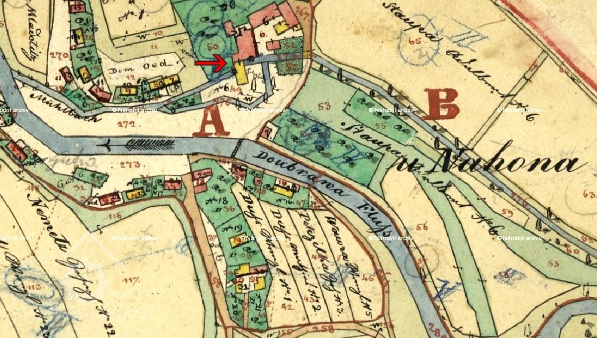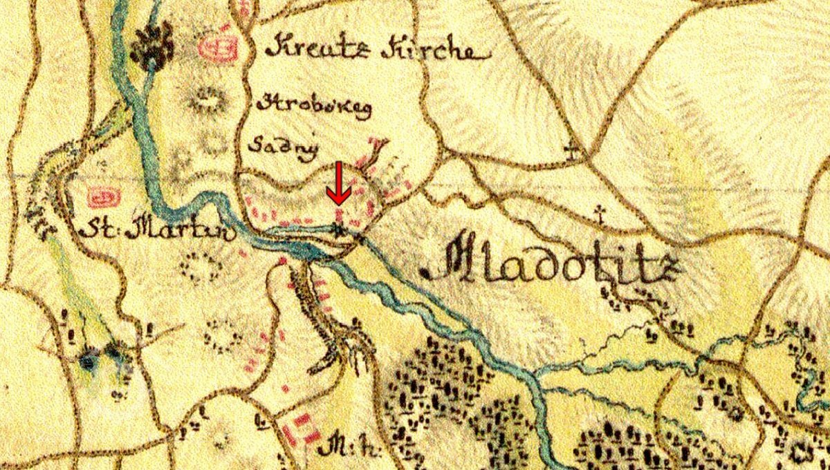Dalším prokazatelným důkazem o existenci mladotického mlýna je I. vojenské mapování z let 1764-1768 a jeho rektifikace z let 1780-1783 (viz http://oldmaps.geolab.cz/map_viewer.pl?lang=cs&map_root=1vm&map_region=ce&map_list=c147), z něhož je vidět též z Doubravy vybudovaný Mlýnský náhon. Tehdy mlýn patřil Václavu Stoupovi (Staupovi), jenž zemřel 23. ledna 1800. Opětovně je zaznamenán ve II. vojenském mapování z let 1836-1852 (viz http://oldmaps.geolab.cz/map_viewer.pl?lang=cs&map_root=2vm&map_region=ce&map_list=O_10_VII) a v indikační skice stabilního katastru z roku 1838 (viz https://ags.cuzk.cz/archiv/openmap.html?typ=skicic&idrastru=CAS367018380), kdy náležel Adalbertu Staupovi (Vojtěchu Stoupovi). Z tohoto kartografického díla vidíme, že tehdy ještě existoval původní dřevěný mlýn, k němuž někdy na přelomu 18. a 19. století přibyl další zděný, i když některé prameny hovoří o tom, že roubený objekt nebyl mlýnem, nýbrž pilou, takže si můžeme vybrat, jak tomu bylo doopravdy.