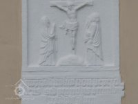 Mezi druhým a třetím oknem je na kameni vytesáno umučení Páně.