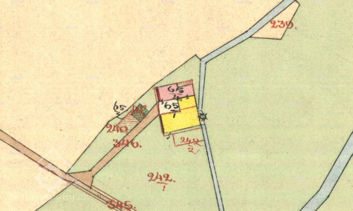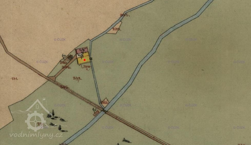 Samota,dům čp.12/st.p.65/1 v katastrálním území Lenora/Schattawa/.Mlýn je zobrazen na mapě Stabilního katastru:Čechy:3860-2-k.ú.Lenora,mapový list č.003.