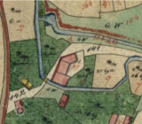Okolí mlýna je zcela změněno. Od potoka jsou patrné stopy po náhonu.