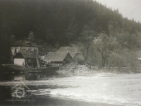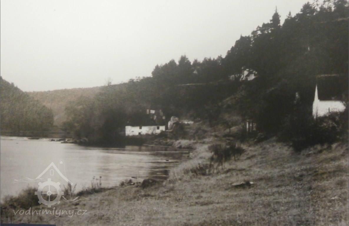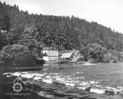 Orlickou přehradou zatopený mlýn na levém břehu Vltavy.