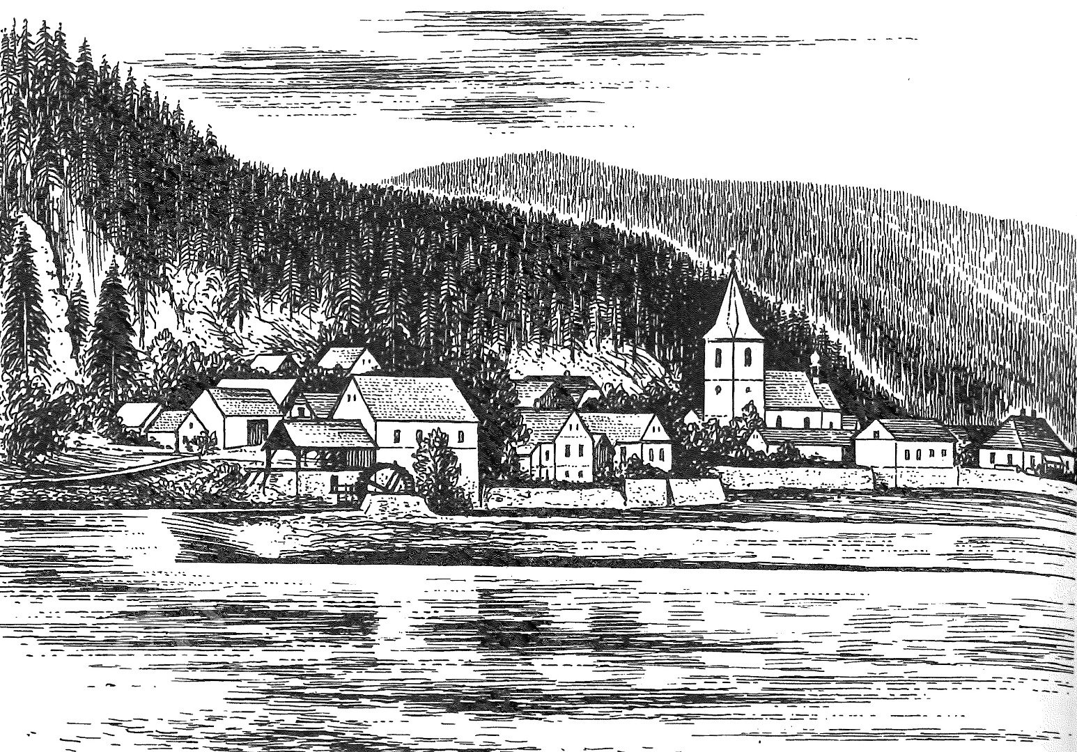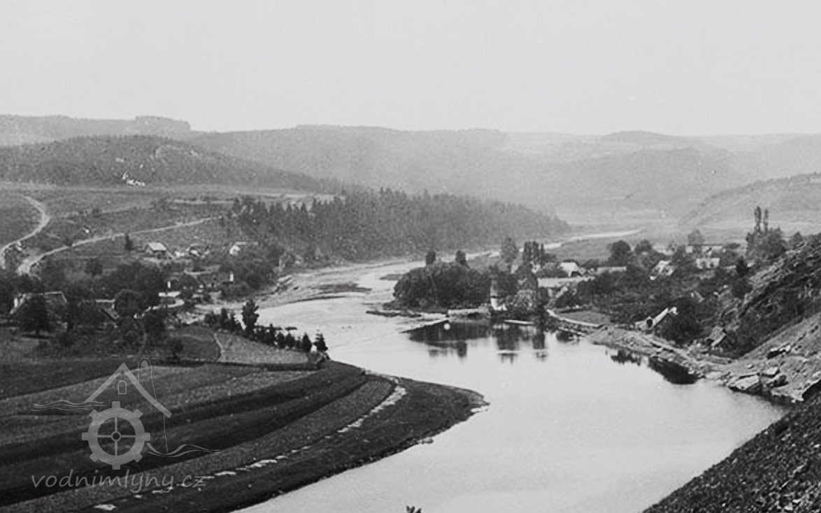 Orlickou přehradou zatopený mlýn v obci Těchnice na levém břehu Vltavy